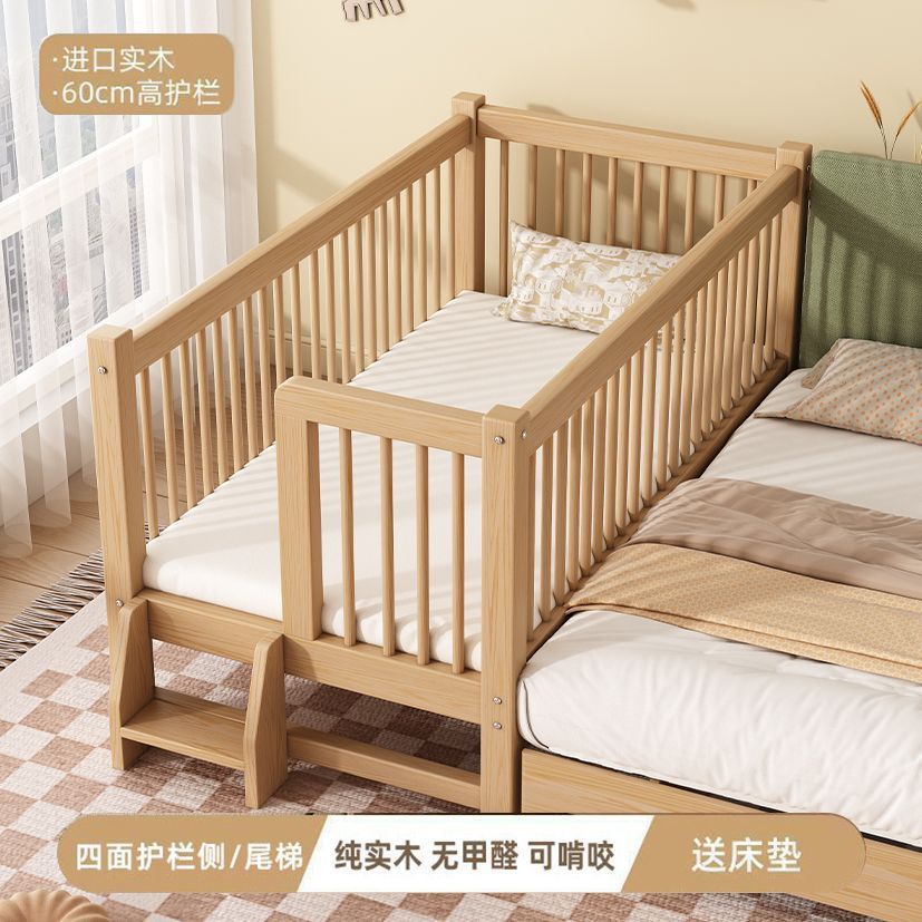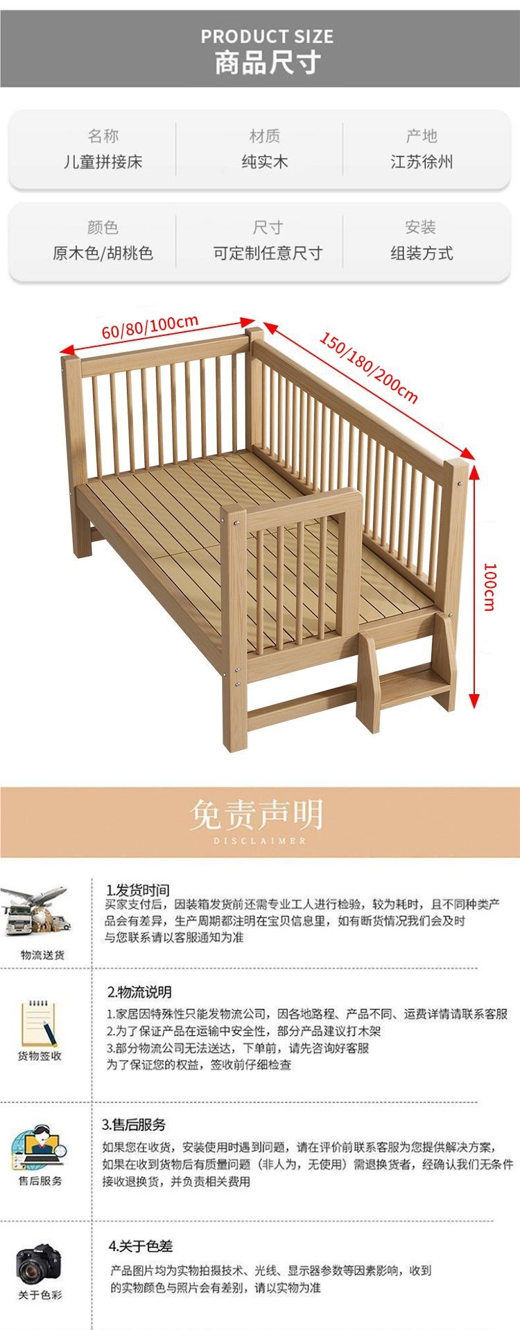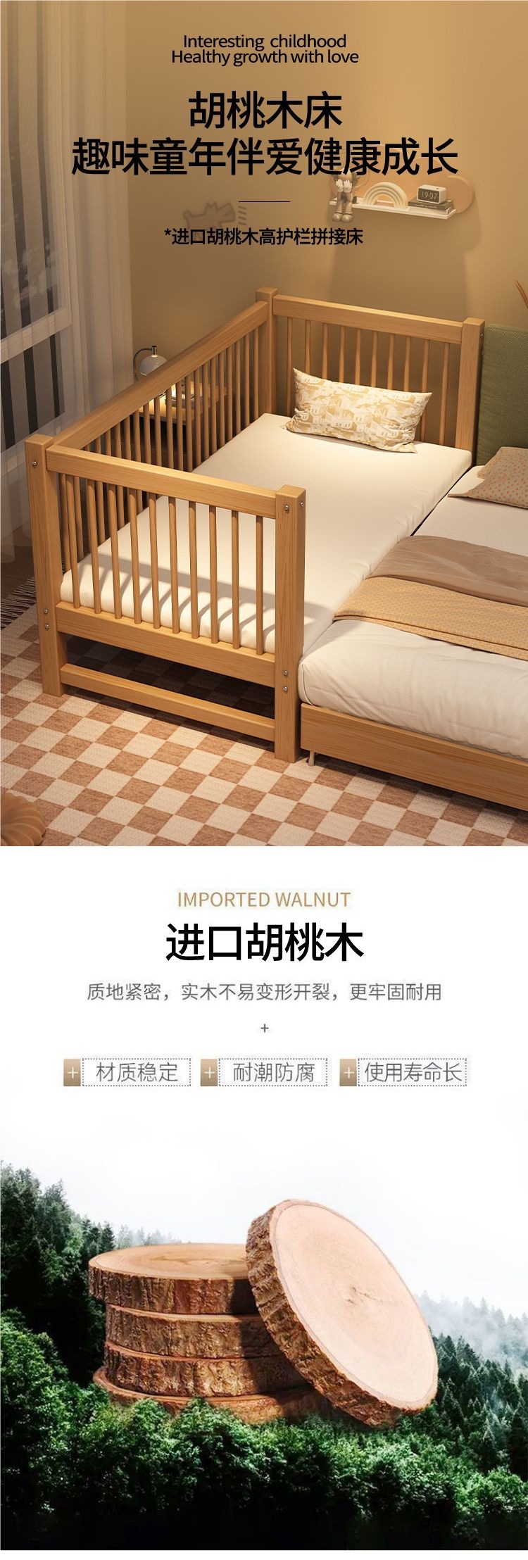 호두나무 어린이 침대 유아용 침대 순수한 아기 단단한 나무 접합 침대 강화 및 두꺼운 공주 침대 싱글 침대 매우 두꺼운스토어 가기