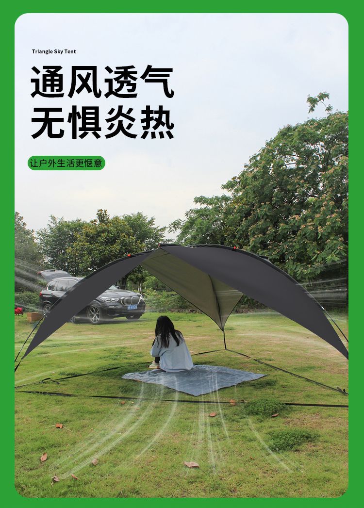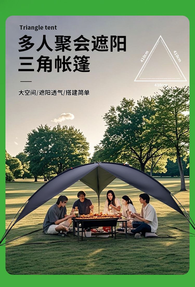 야외 은색 코팅 태양 보호 및 비 보호 대형 삼각형 캐노피 다중 사용자 텐트 해변 차양 및 비 차양 다기능스토어 가기