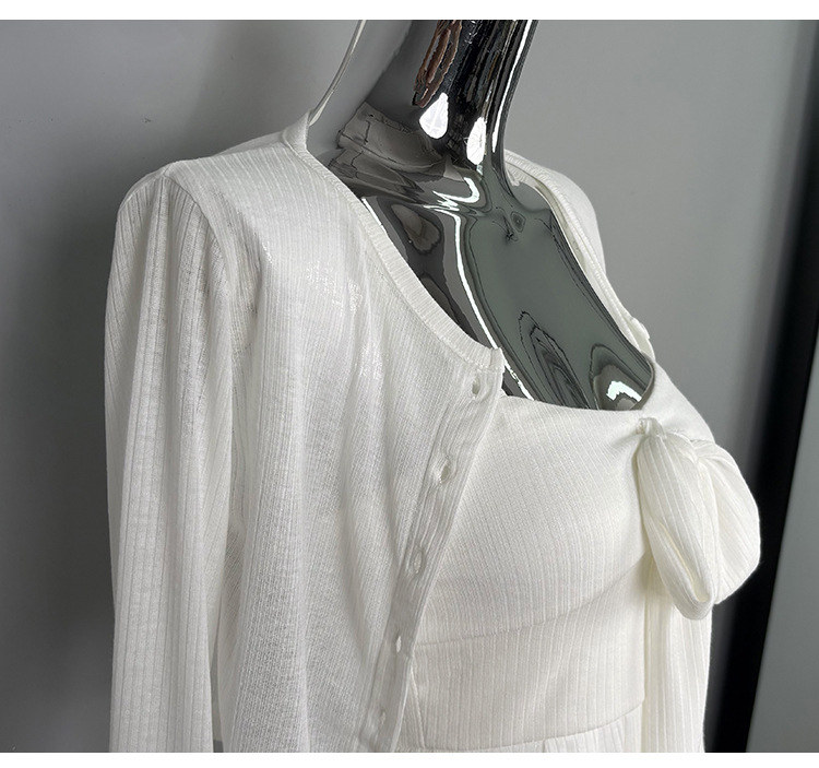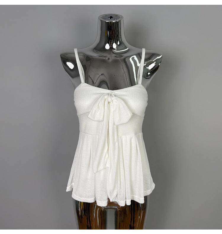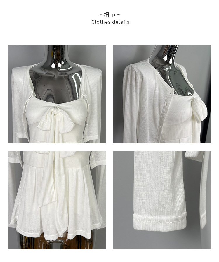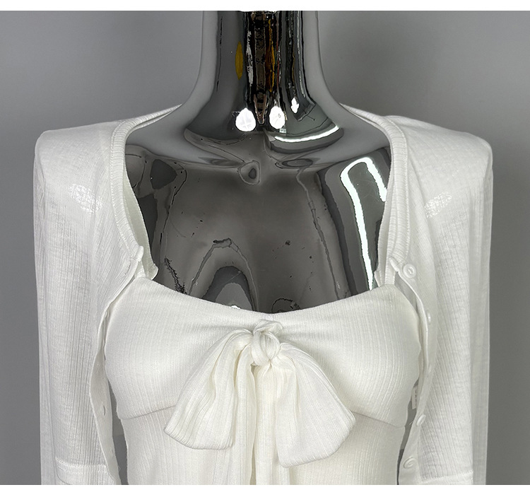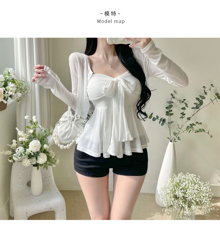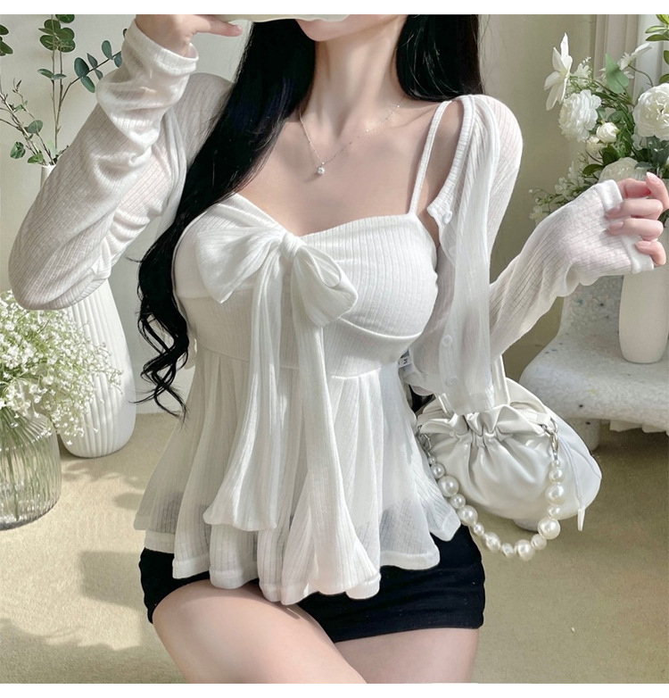 한국 동대문 새로운 스타일 솔리드 컬러 보우 슬림 섹시한 서스펜더 카디건 투피스 슈트 탑 여성 의류스토어 가기