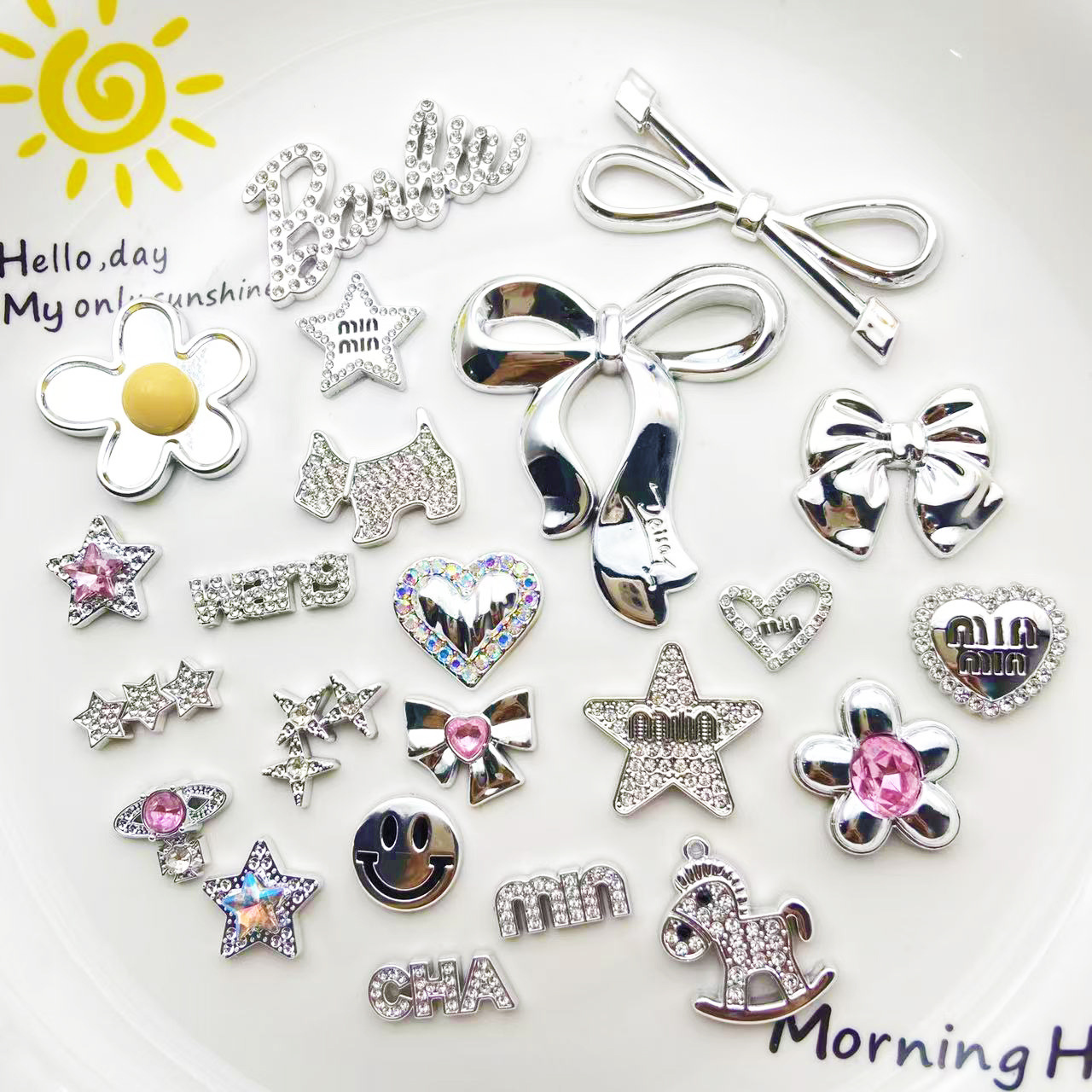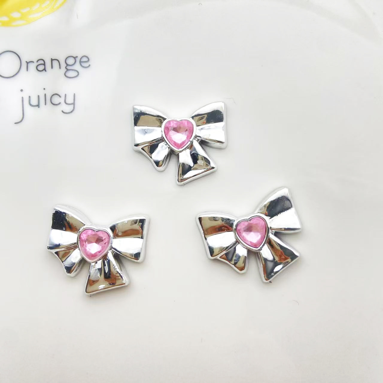 다이아몬드가 박힌 고급 실버 러브 보우, 작은 향기로운 액세서리, DIY 머리핀, 휴대폰 케이스, 나막신