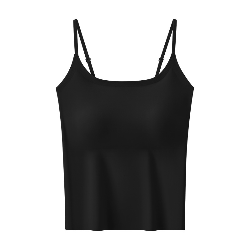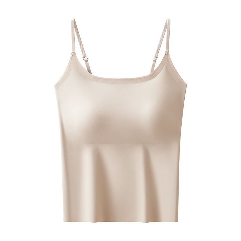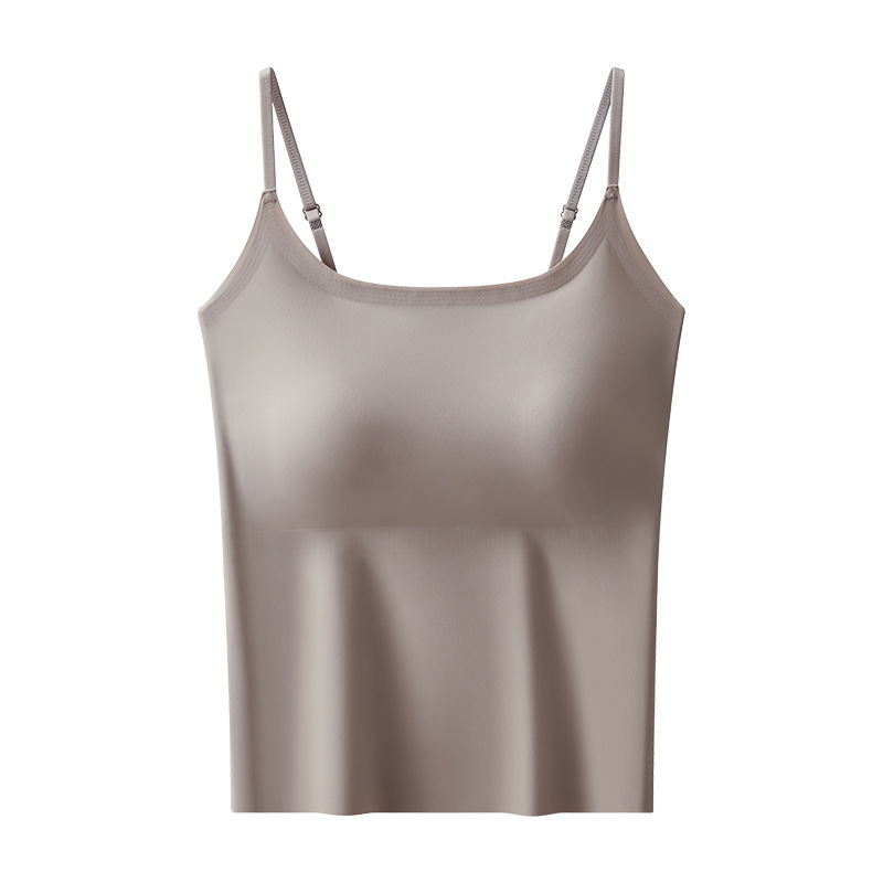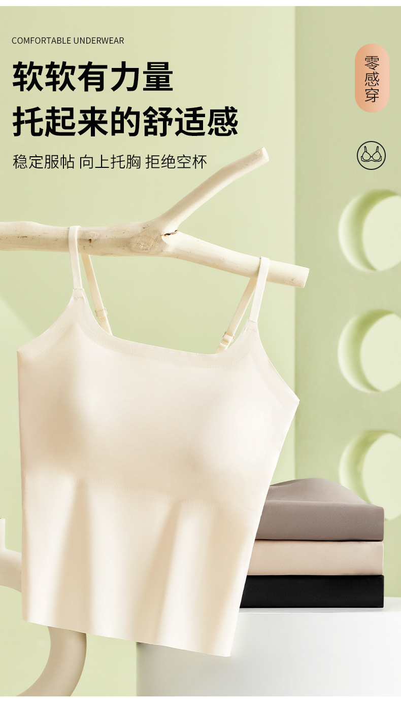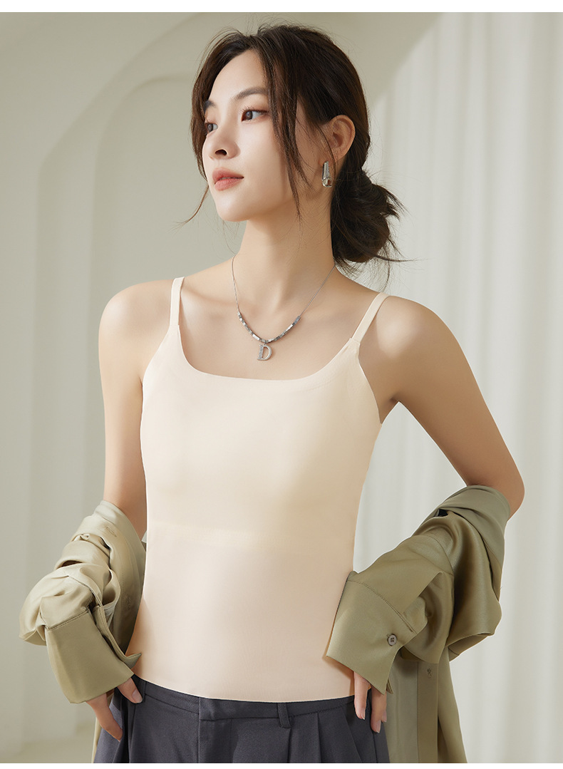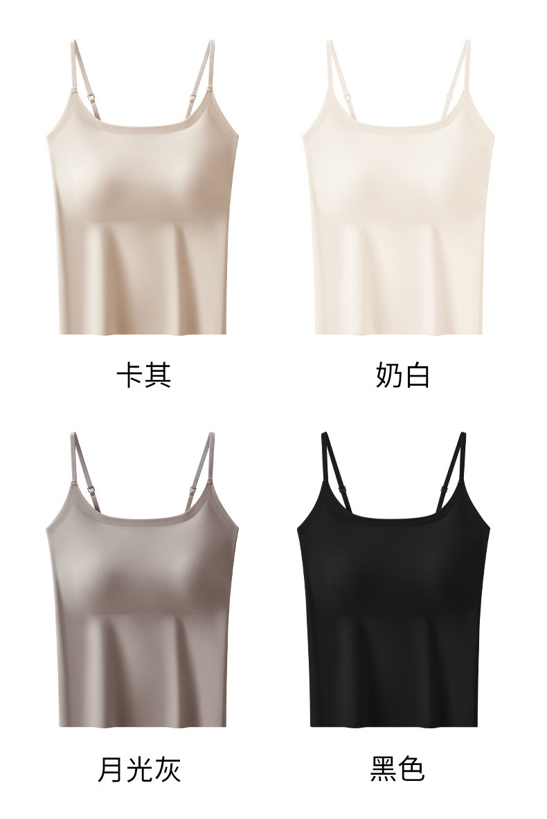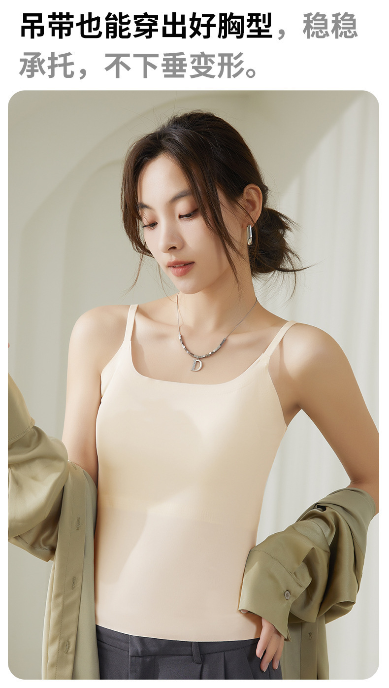 가슴 패드가 내장된 캐미솔 리퀴드 파운데이션, 아이스 실크, 아름다운 등 베이스 레이어, 시원하고 편안하며 흔적이 없으며 슬리밍 및 노출 방지