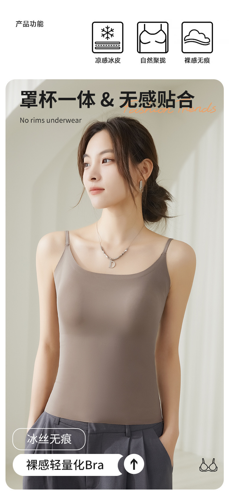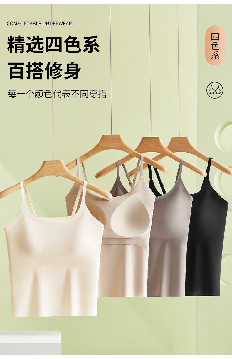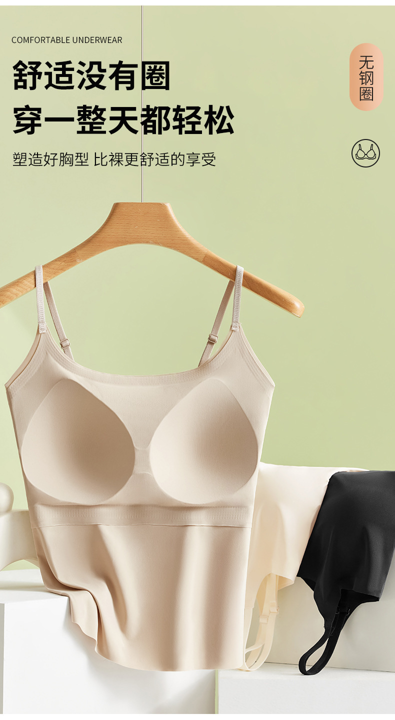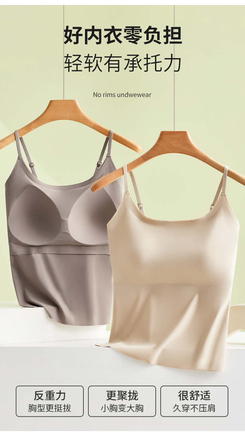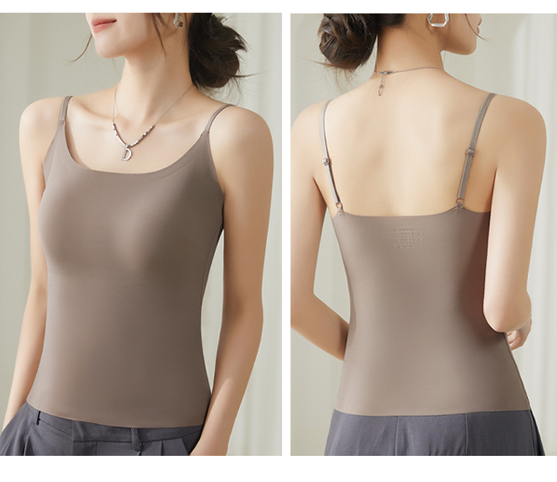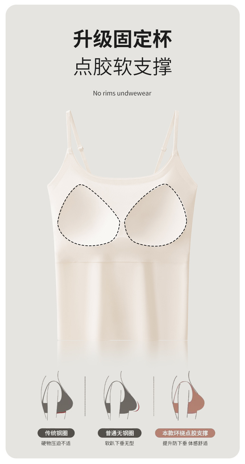 가슴 패드가 내장된 캐미솔 리퀴드 파운데이션, 아이스 실크, 아름다운 등 베이스 레이어, 시원하고 편안하며 흔적이 없으며 슬리밍 및 노출 방지
