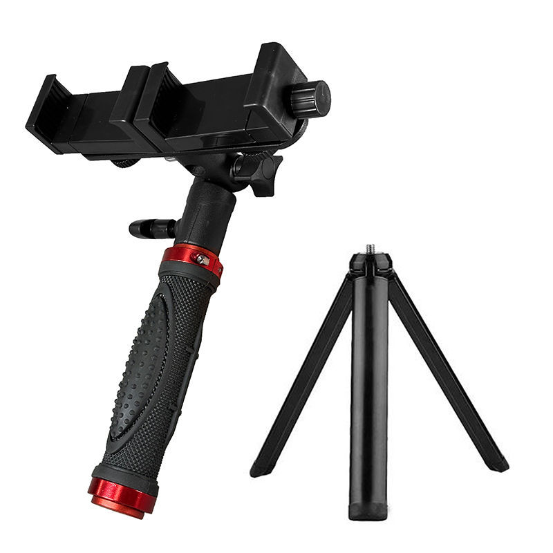 듀얼 카메라 휴대용 휴대폰 홀더 라이브 방송 야외 데스크탑 삼각대 게으른 휴대폰 홀더 휴대용 스포츠