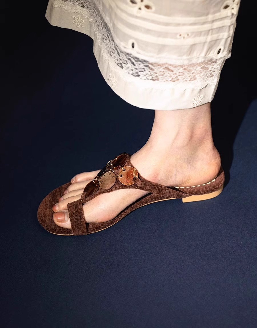2025년 여름 신상 캐주얼 하이엔드 여성 플립플롭 플랫 바닥 패션 아우터 샌들 트렌디스토어 가기