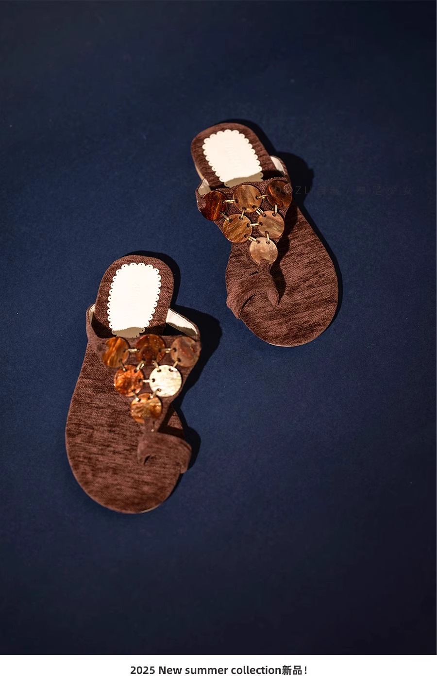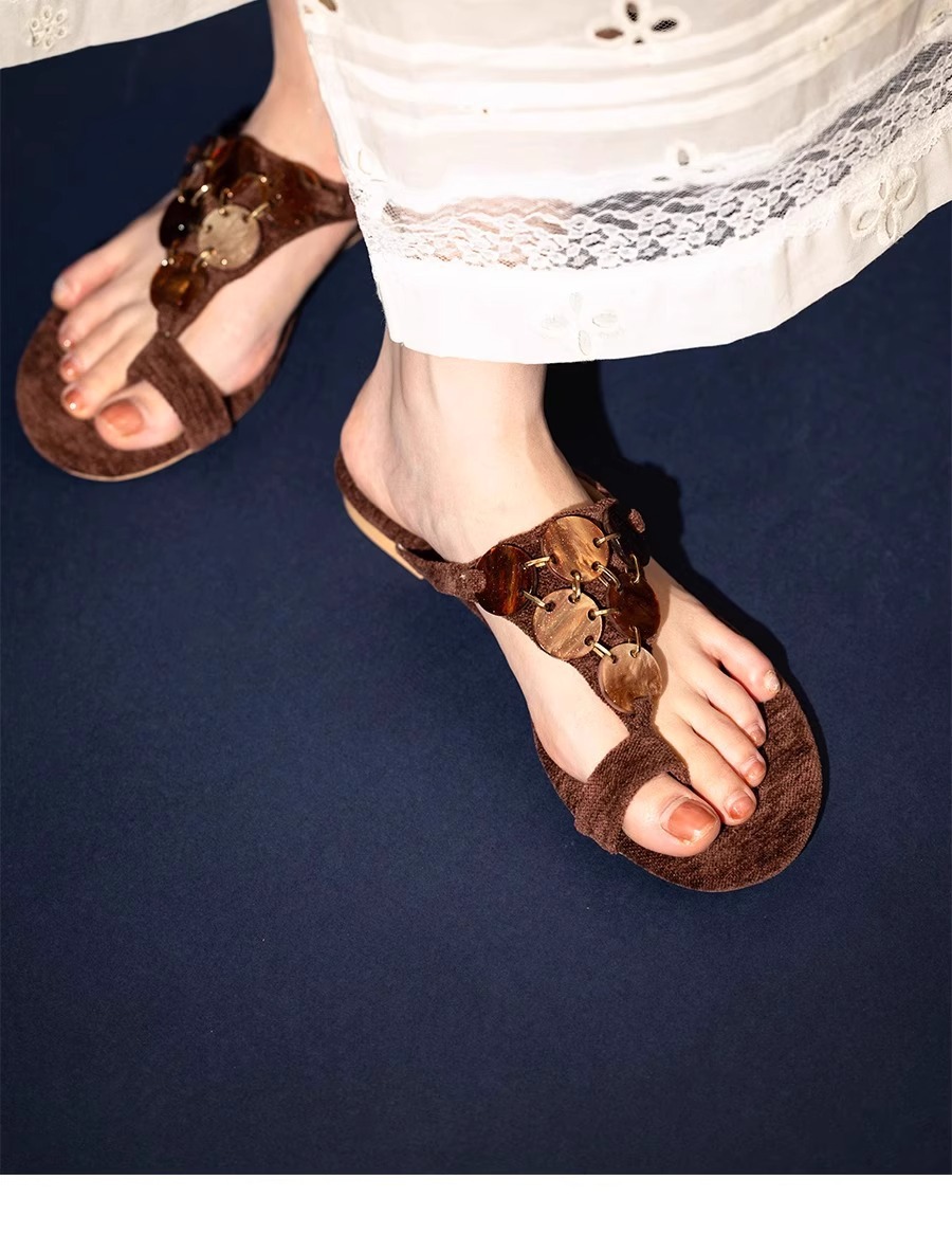 2025년 여름 신상 캐주얼 하이엔드 여성 플립플롭 플랫 바닥 패션 아우터 샌들 트렌디
