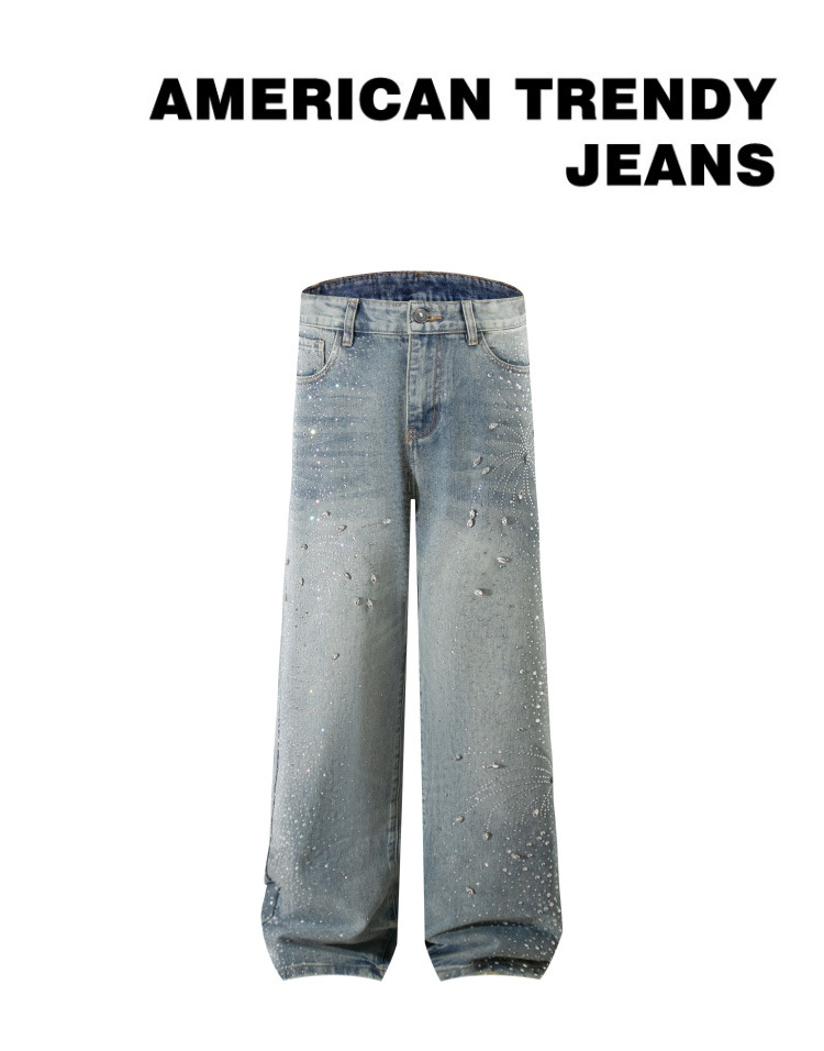 유럽과 미국의 대외 무역은 남성용 핫 다이아몬드 2025 새로운 트렌디 브랜드 루즈 스트레이트 데님 바지 Amazon Cross-Border에 특별히 제공됩니다.스토어 가기