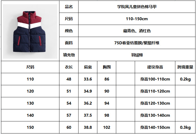 가을 겨울 클래식 아동 조끼, 다운 면 조끼, 새로운 유치원 교복, 초등학생 코트, 학급 교복, 조끼스토어 가기