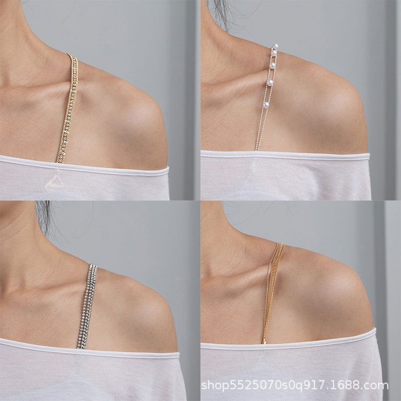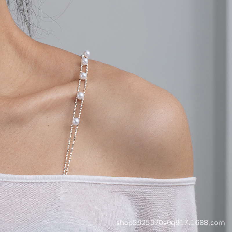 韩国新娘服装配饰双排珍珠文胸带子裹胸隐形内衣肩带可调节细肩带