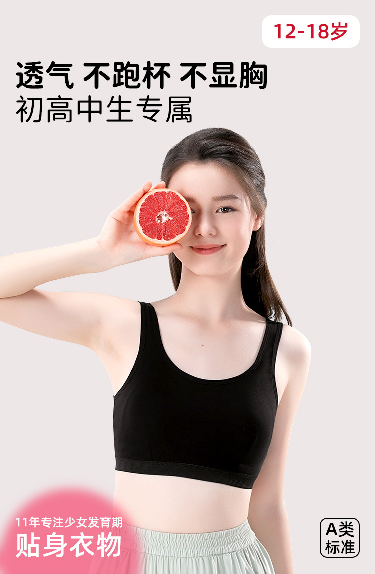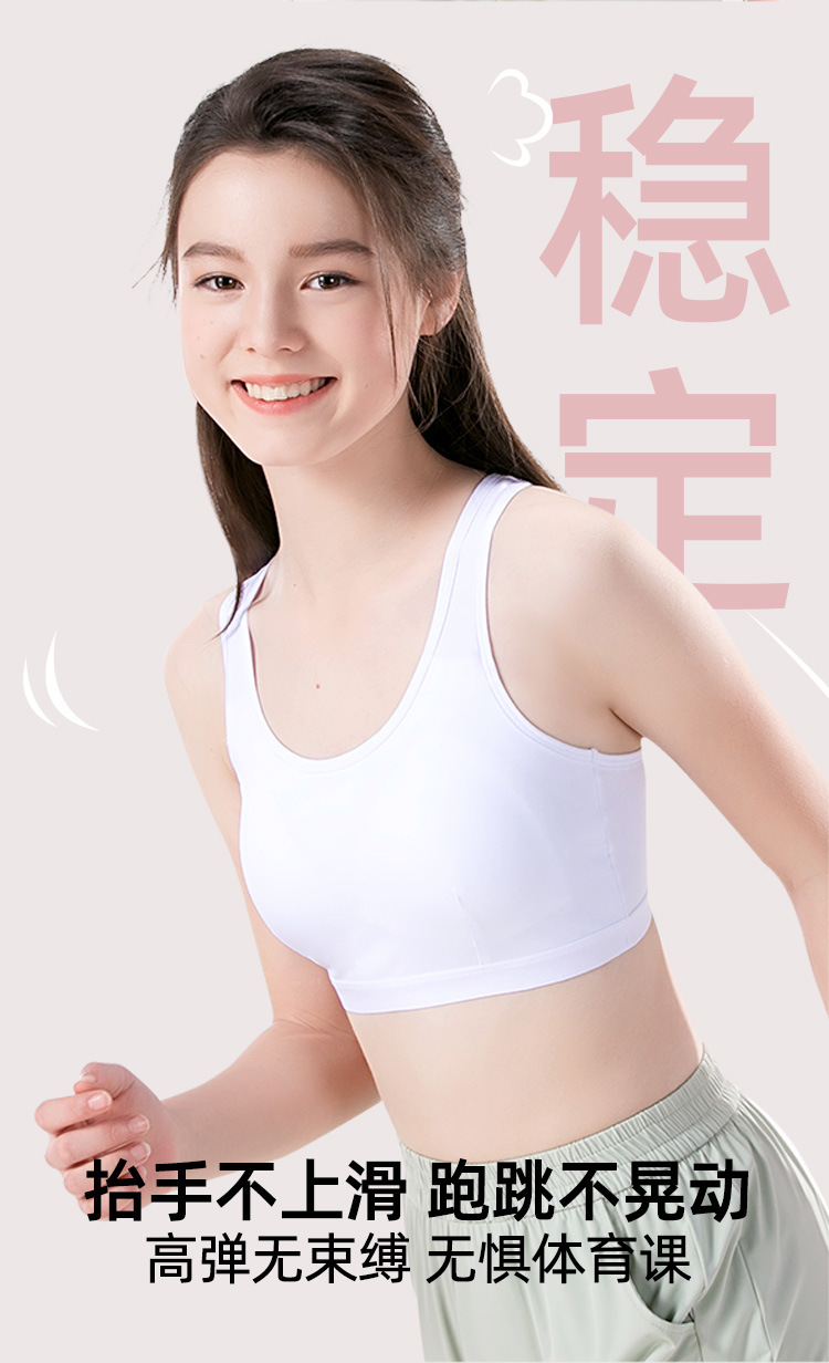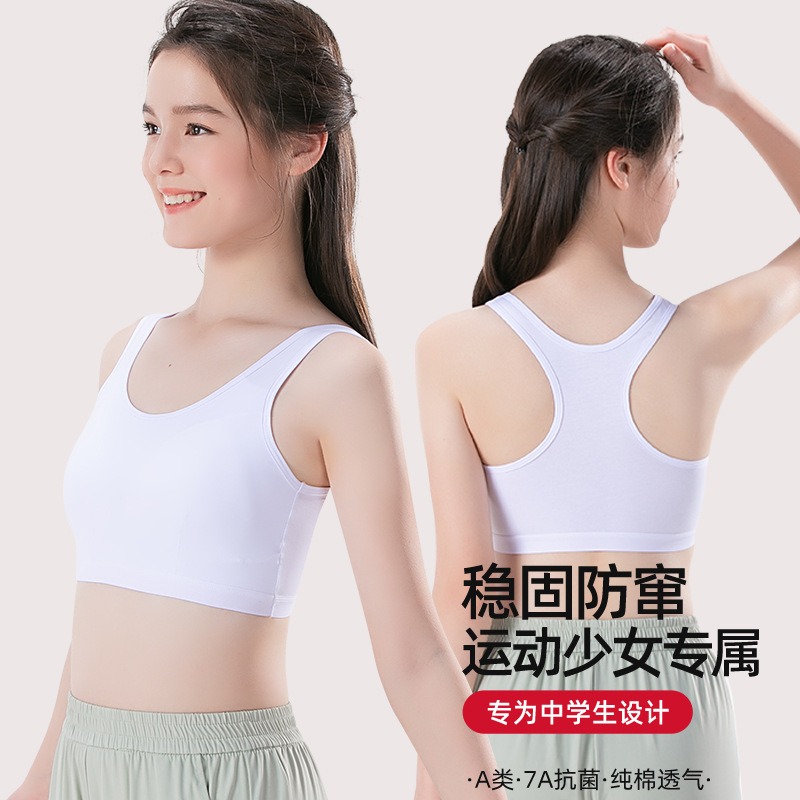 여아 스포츠 브라, 중학생, 고등학생, 발달기, I자형 백 여아 브라, 가슴 패드가 있는 순면 여아 브라