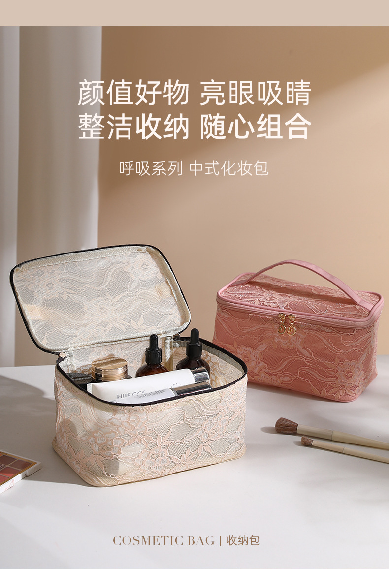 중국풍 레이스 화장품 가방 대용량 방수 세면도구 가방 여행용 수납 가방 휴대용 다기능 핸드백스토어 가기