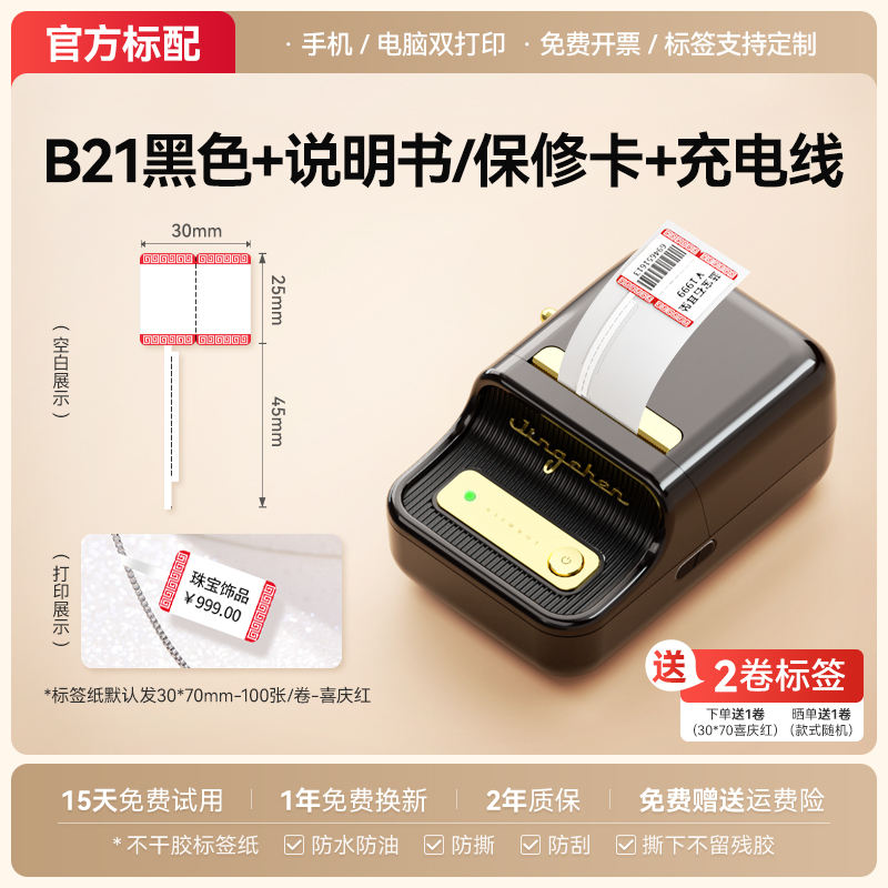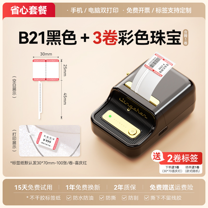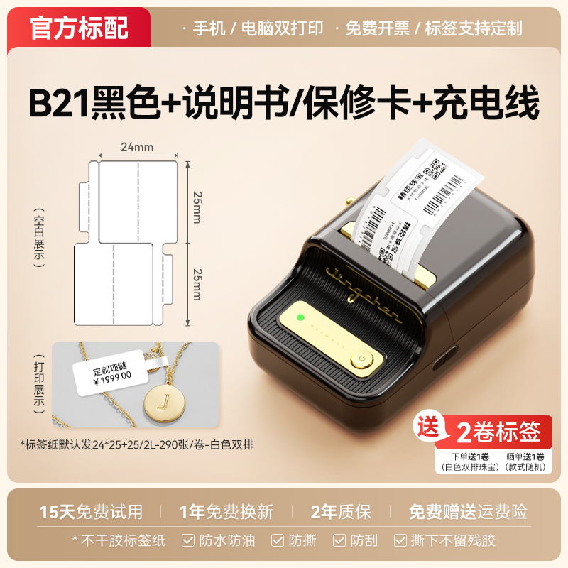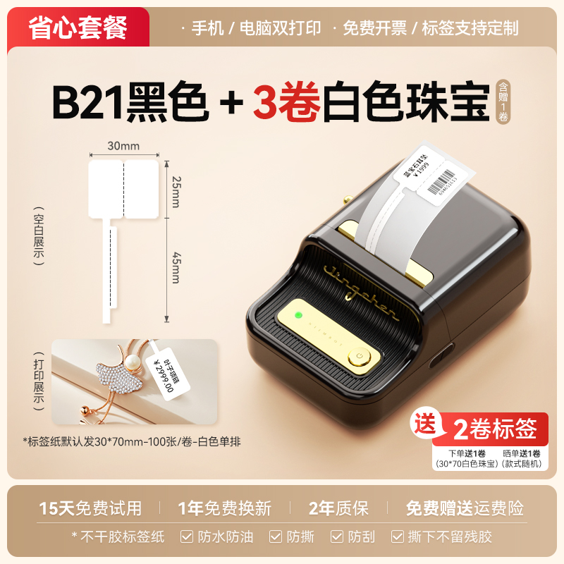• B21 블랙 + 무료 화이트 주얼리 라벨 1롤 + 주문 시 추가 1롤