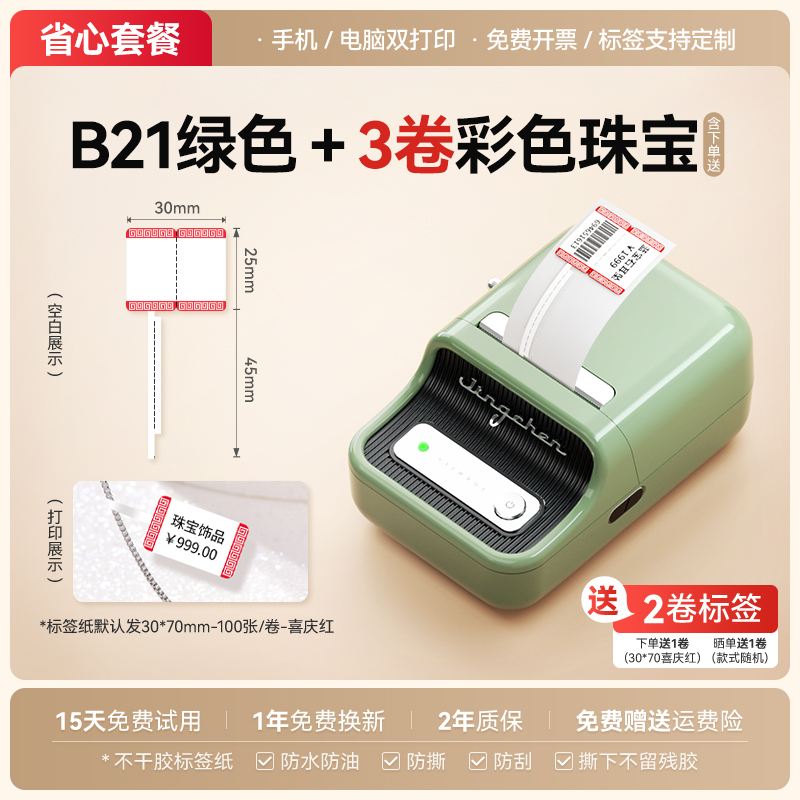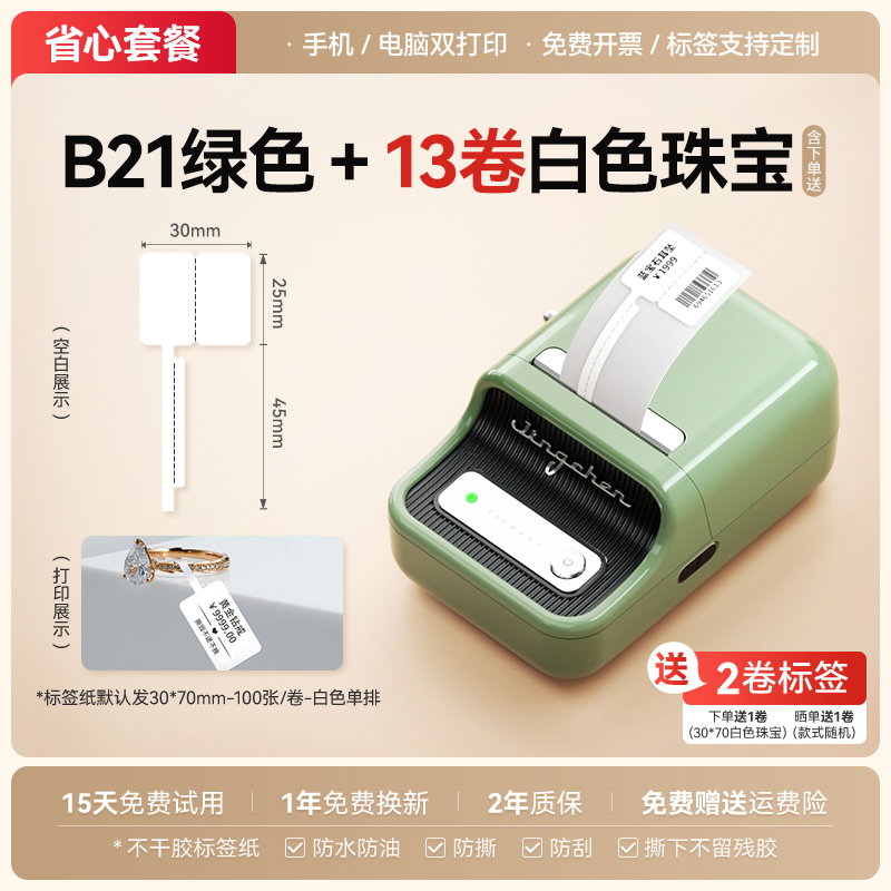 • B21 그린 + 화이트 주얼리 라벨 1롤 무료 + 주문 후 1롤 추가