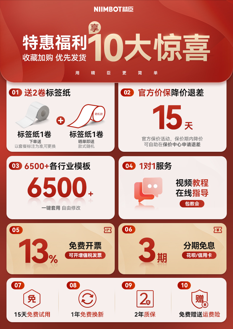 • 특별 제안 B21 빨간색 + 흰색 보석 라벨 7롤(무료 롤 2개 포함) + 주문 시 추가 롤 1개