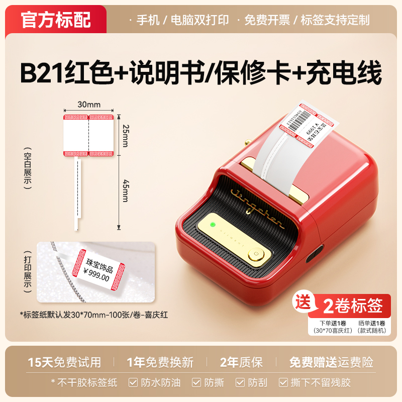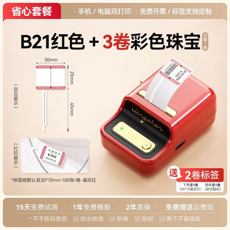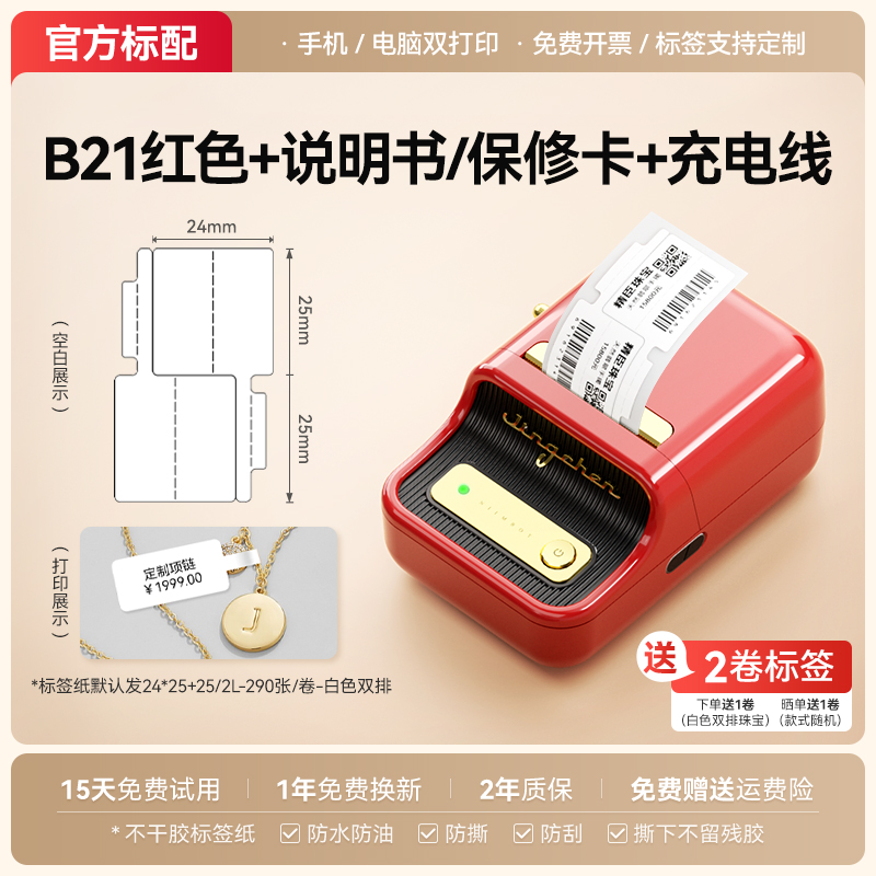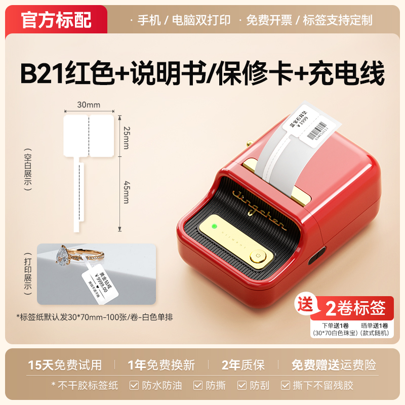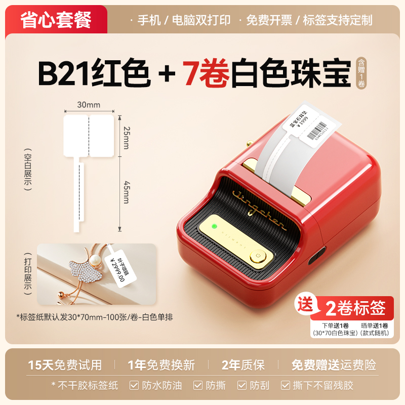 • B21 레드 + 무료 화이트 주얼리 라벨 1롤 + 주문 후 추가 롤 1개