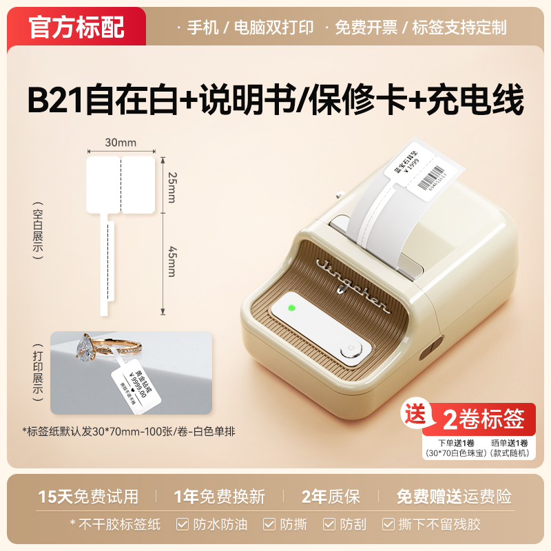 • B21 프리 화이트 + 화이트 주얼리 라벨 1롤 무료 + 주문 시 추가 1롤 제공