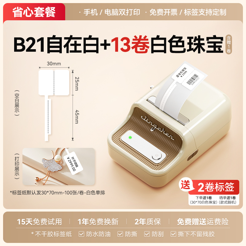 • B21 프리 화이트 + 화이트 주얼리 라벨 13롤(무료 3롤 포함) + 주문 시 추가 1롤 제공