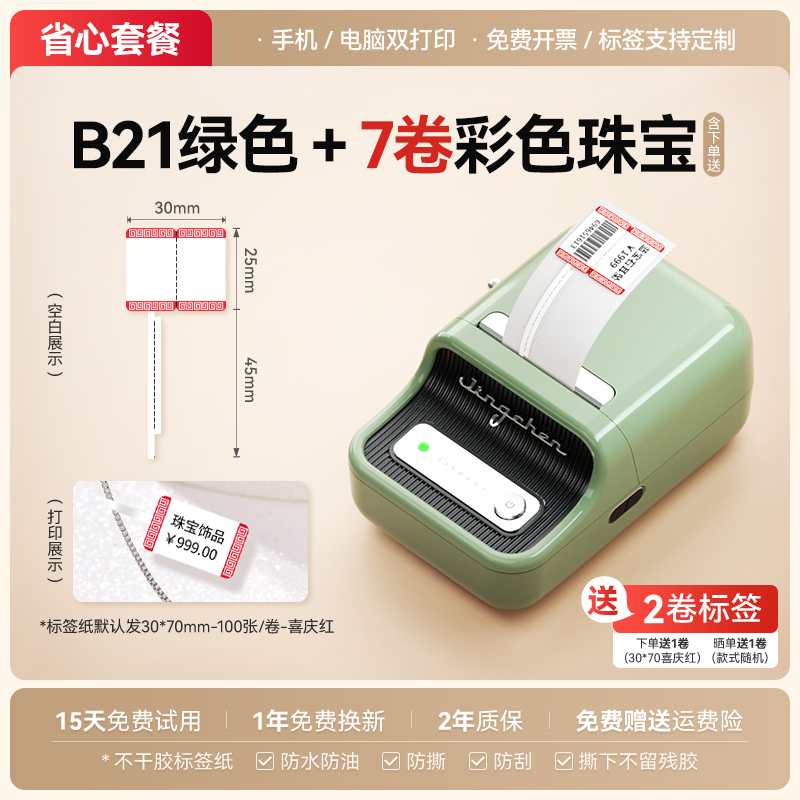 • 특별 제안 B21 녹색 + 흰색 보석 라벨 7롤(무료 롤 2개 포함) + 주문 시 추가 롤 1개