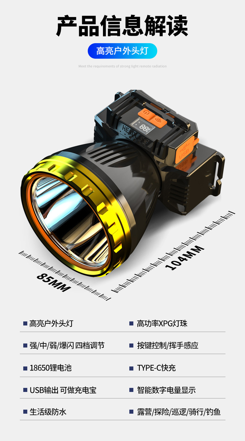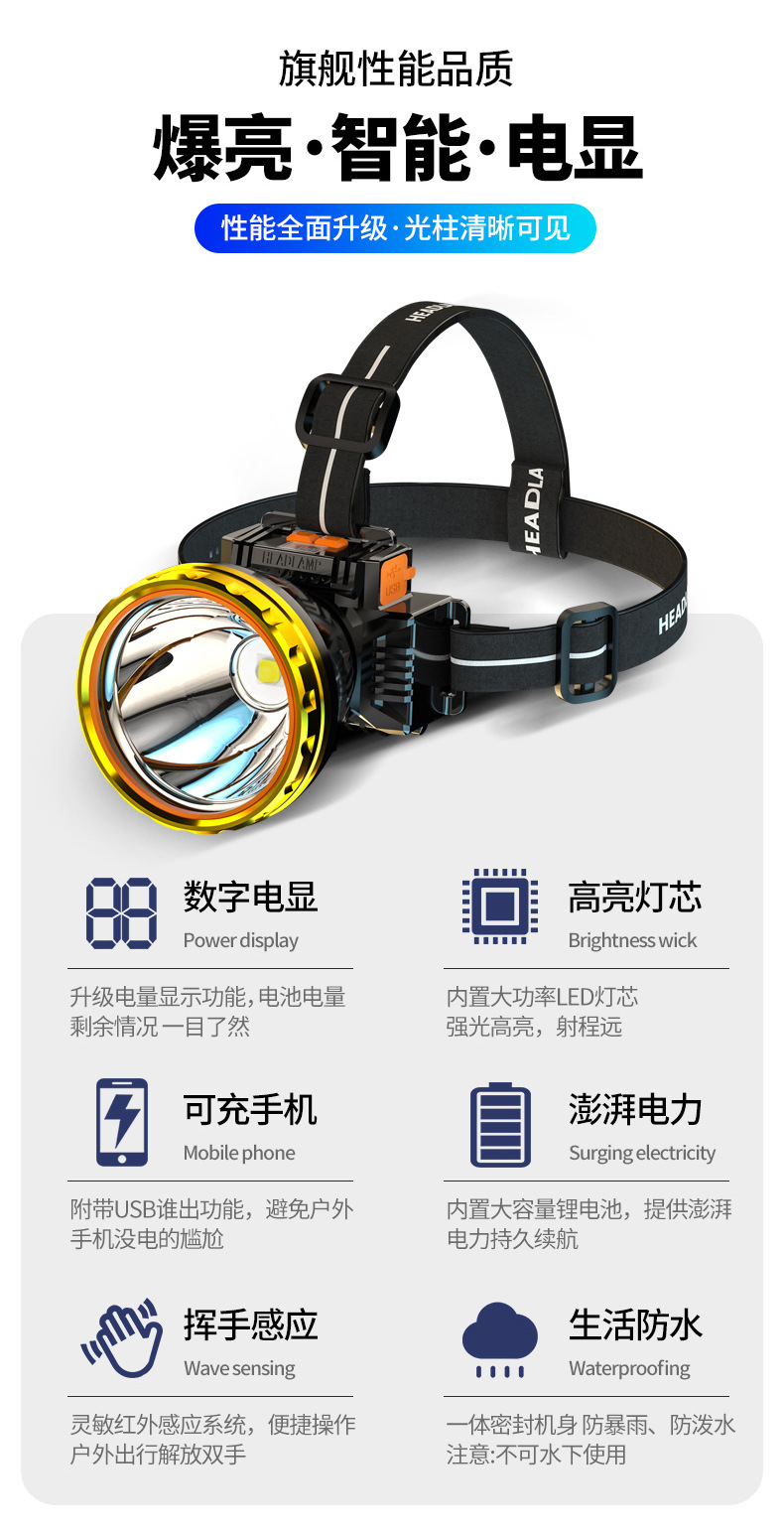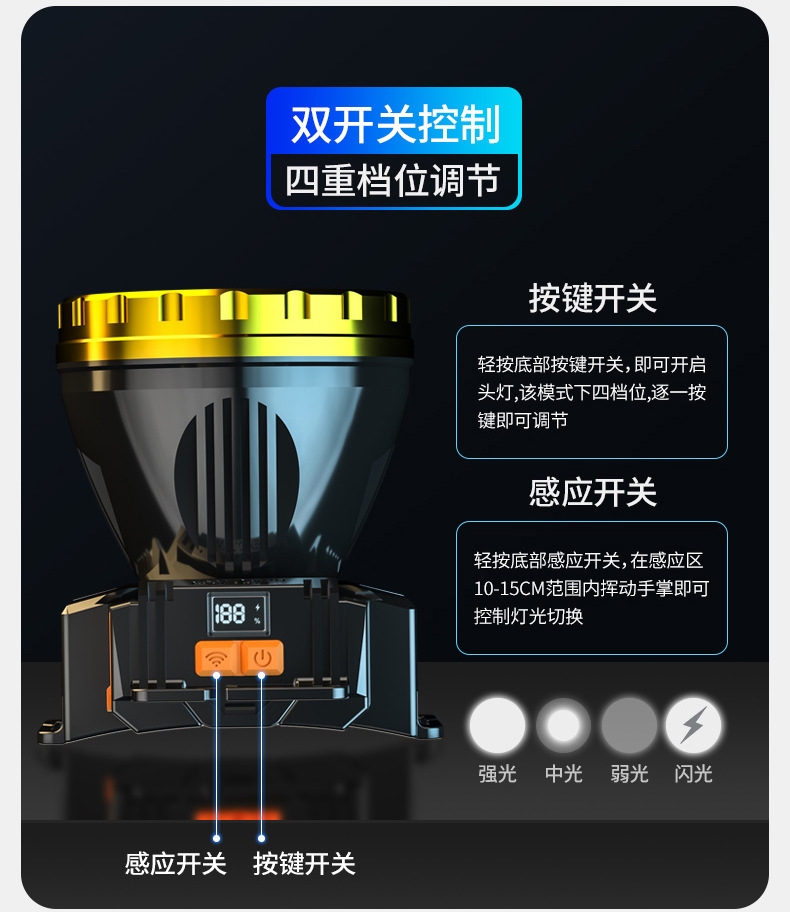 【产品特点】:电量数字显示,带感应模式,大光杯照射更远,可拆卸更换电池方便使用