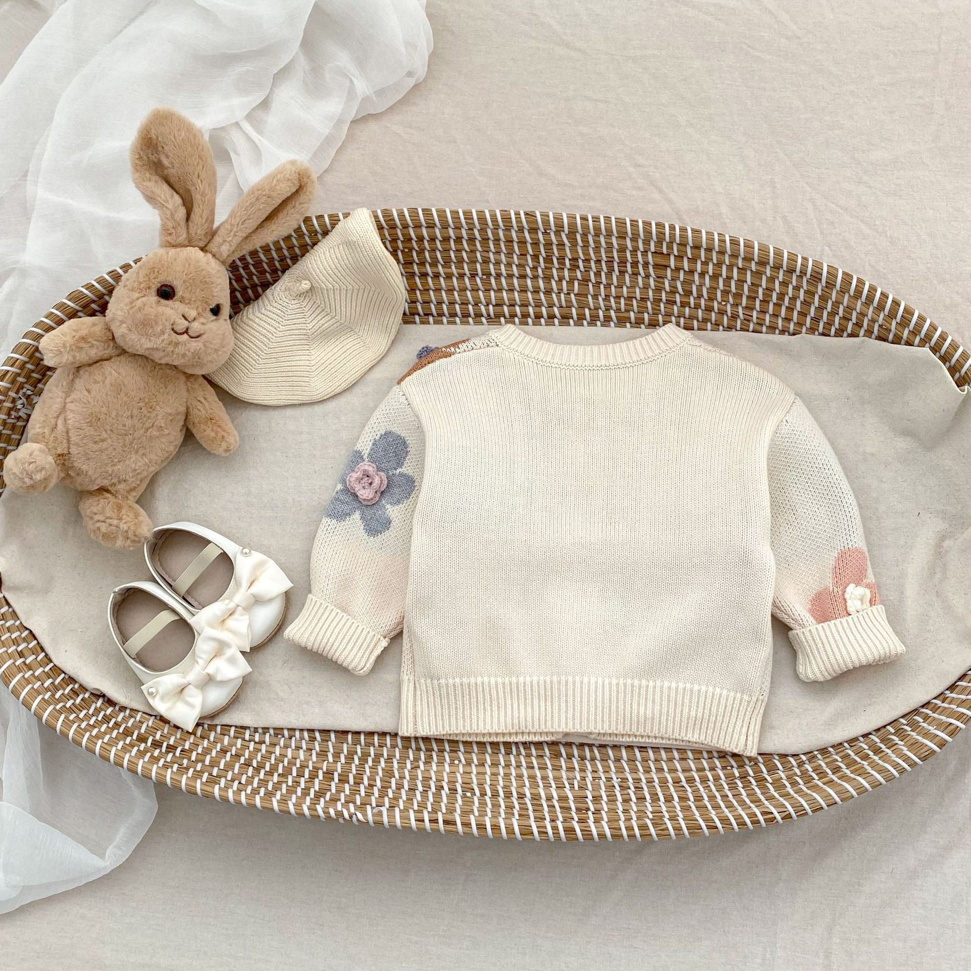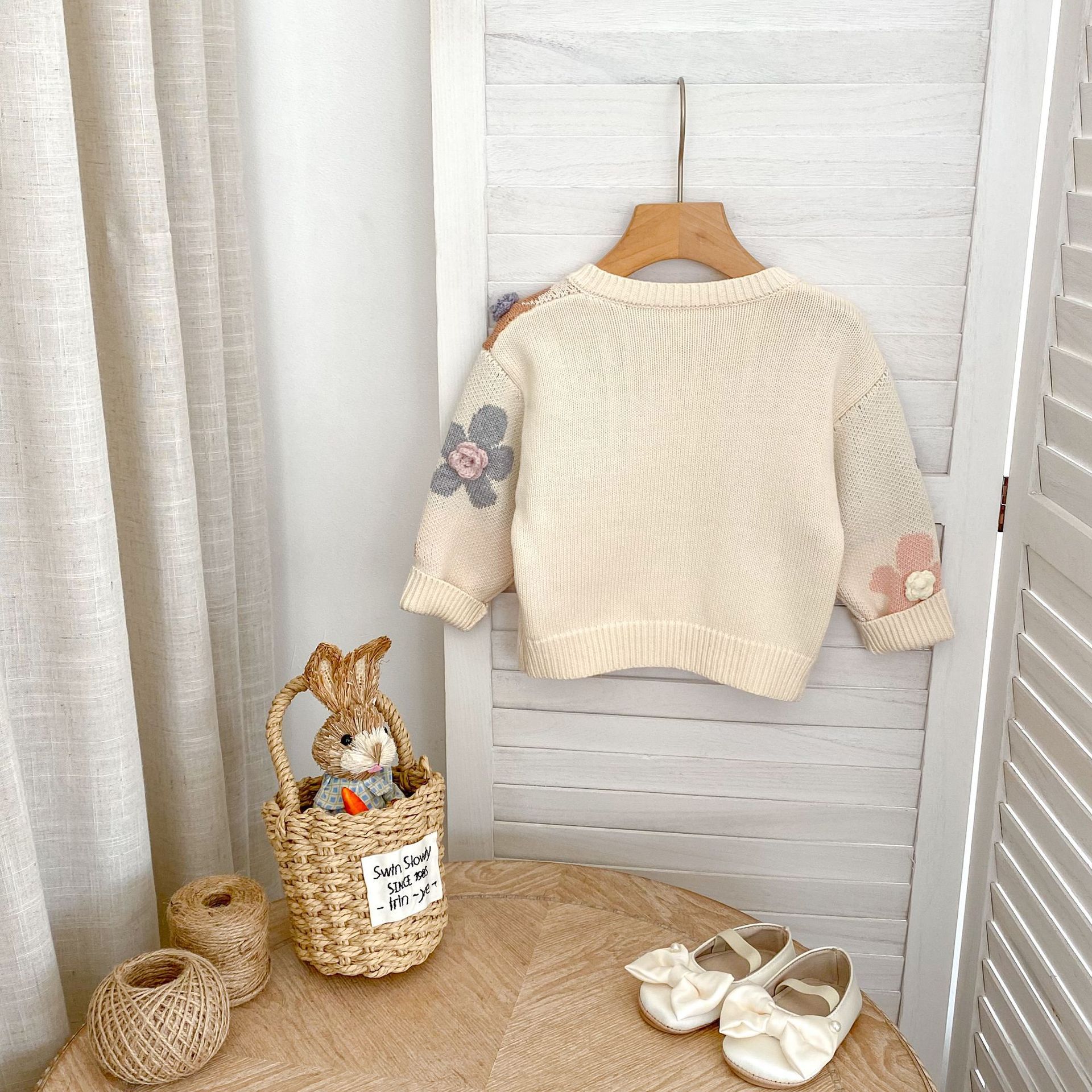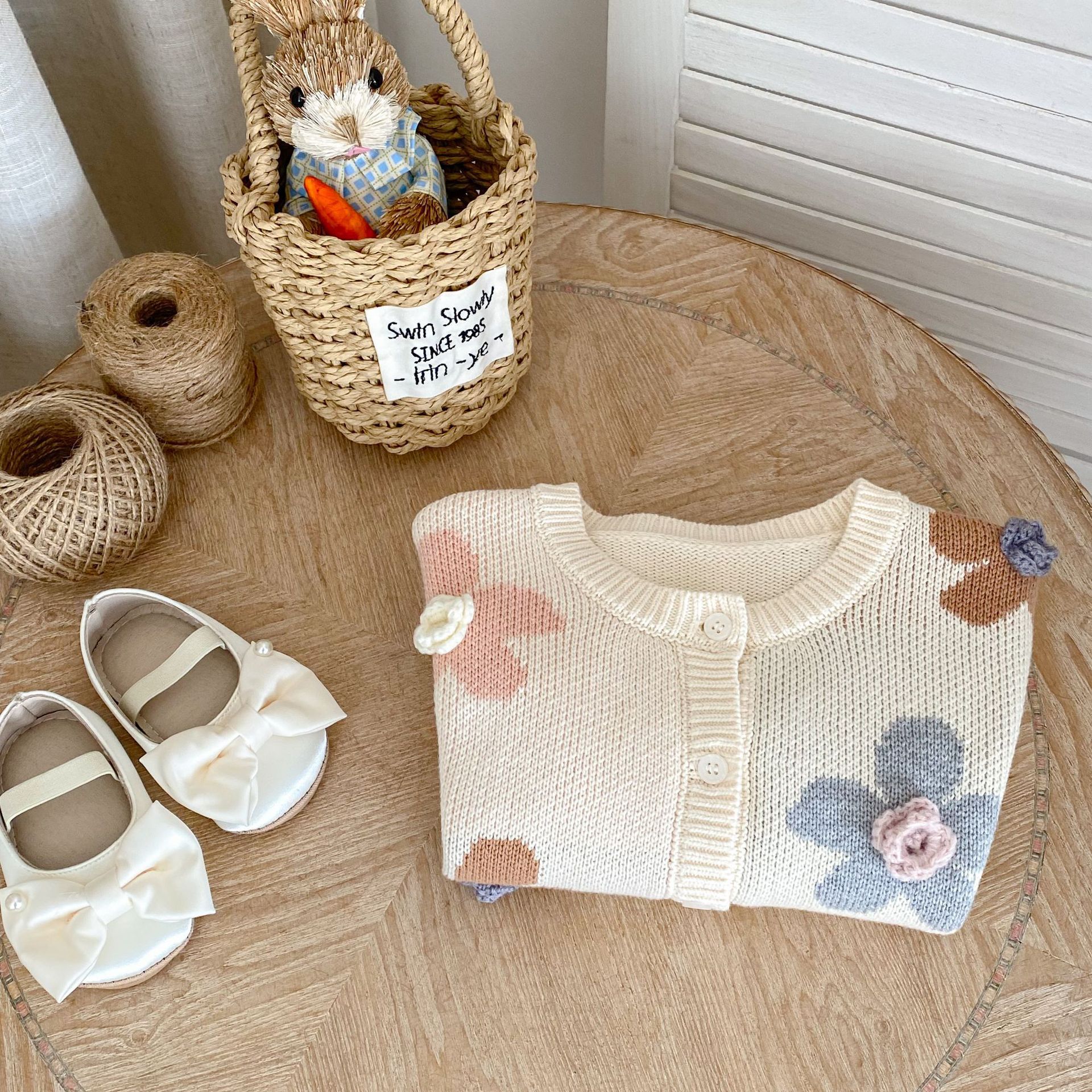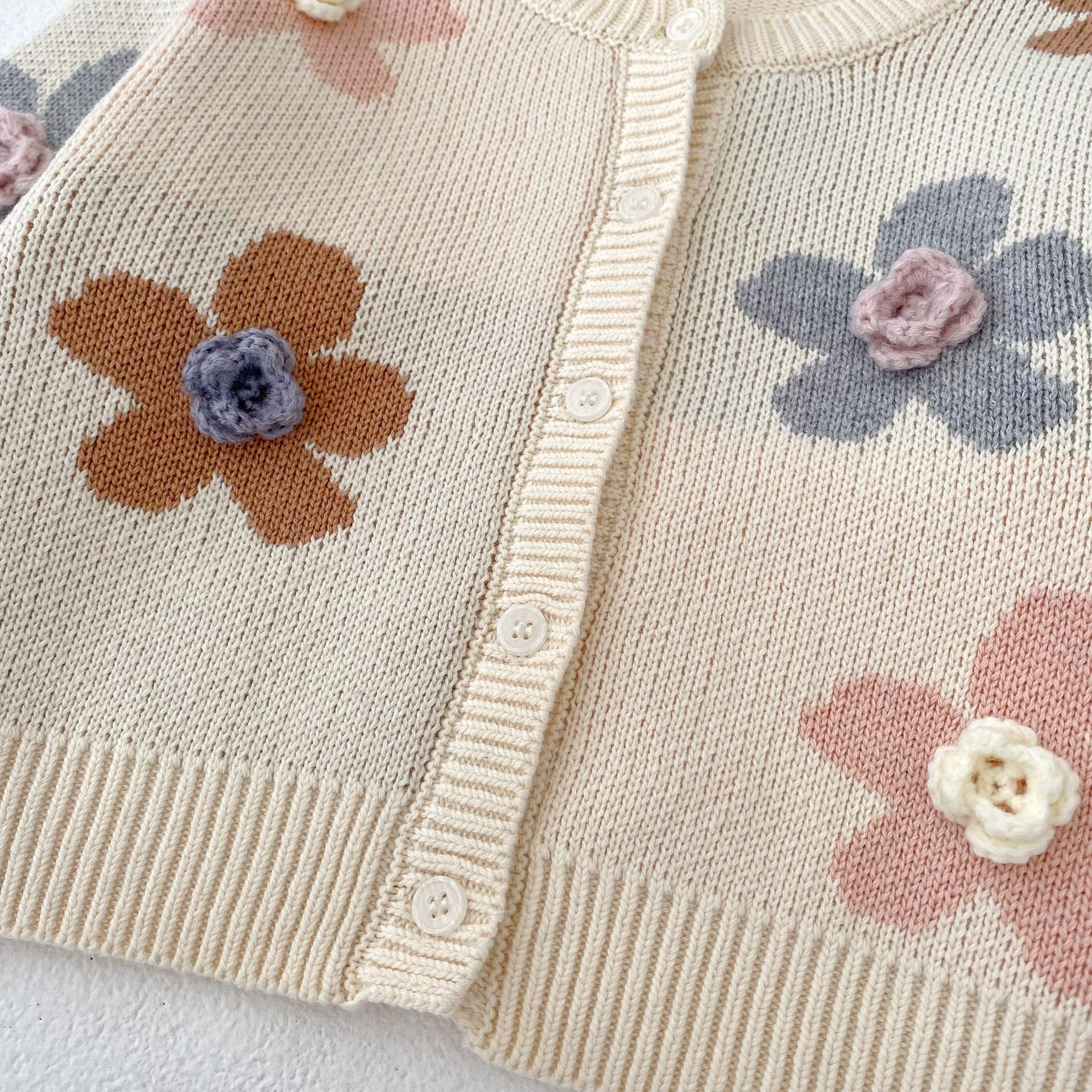 2025 가을 아기 소녀 라운드 넥 카디건 소녀 옷 손으로 뜨개질 스웨터 코트 꽃 자카드 면사스토어 가기