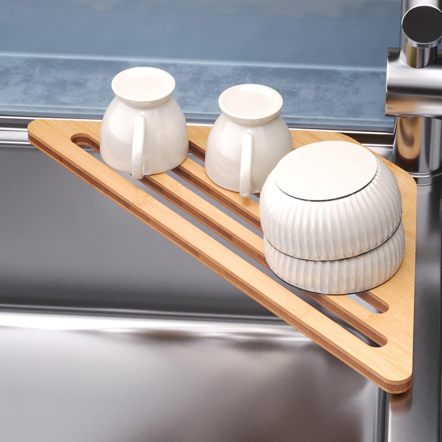 맞춤형 싱크대 배수구, 나무 삼각형 주방 식기 걸이, 걸레 건조대, 세면대 비누 걸이 수납