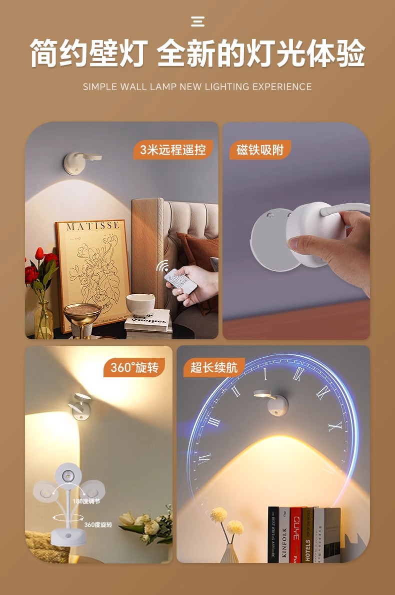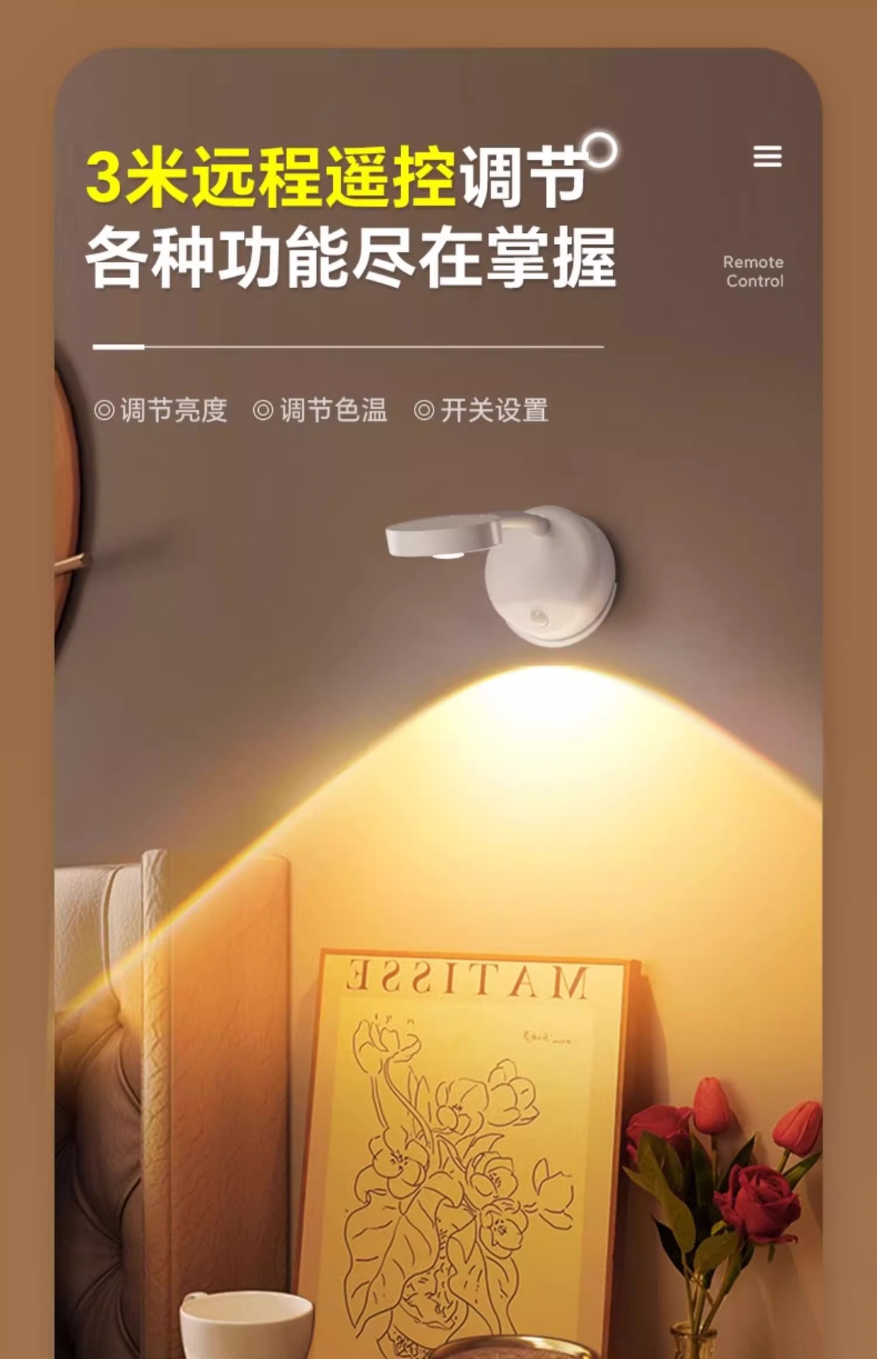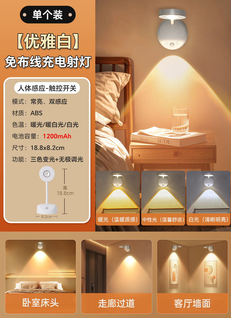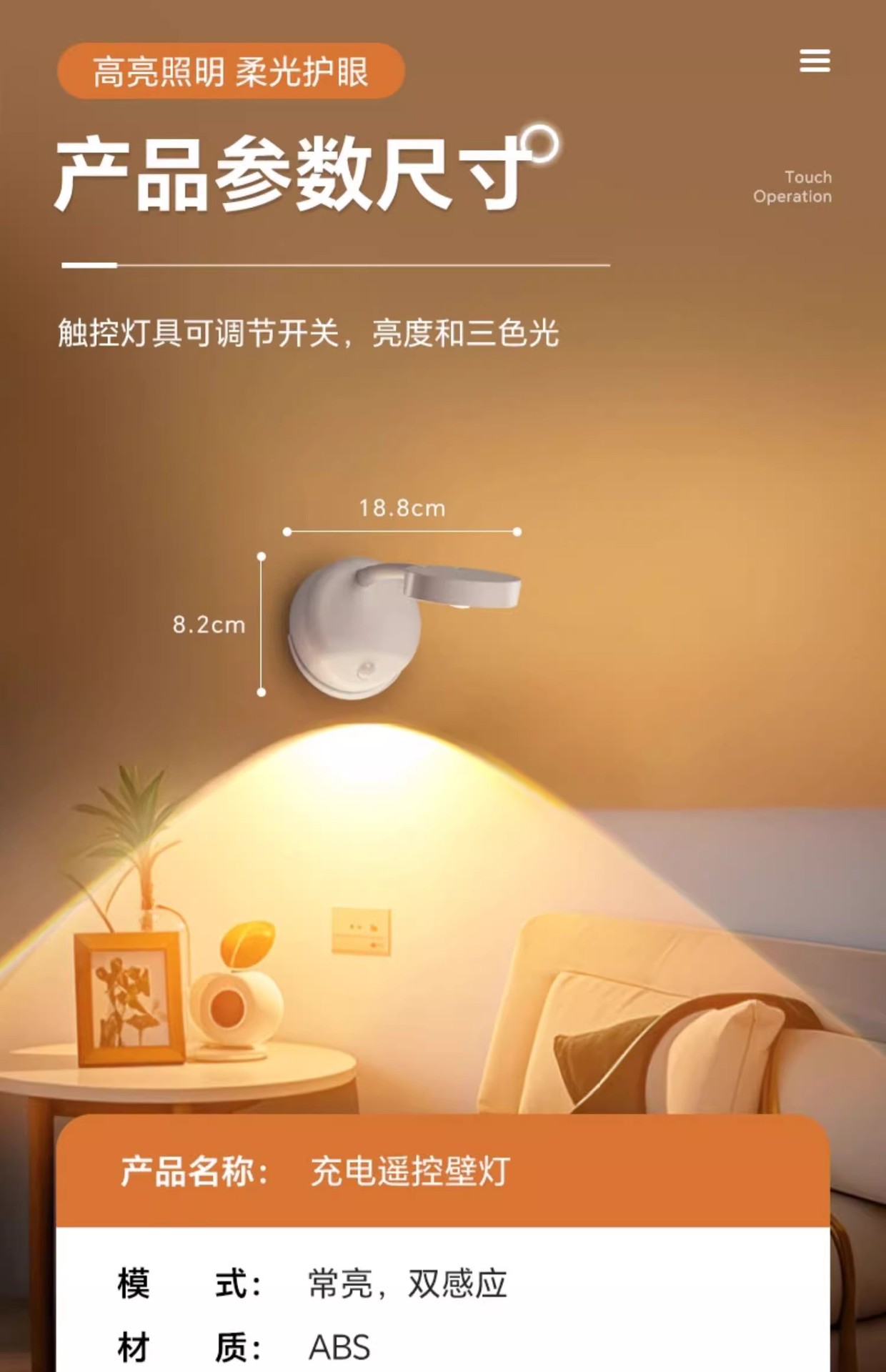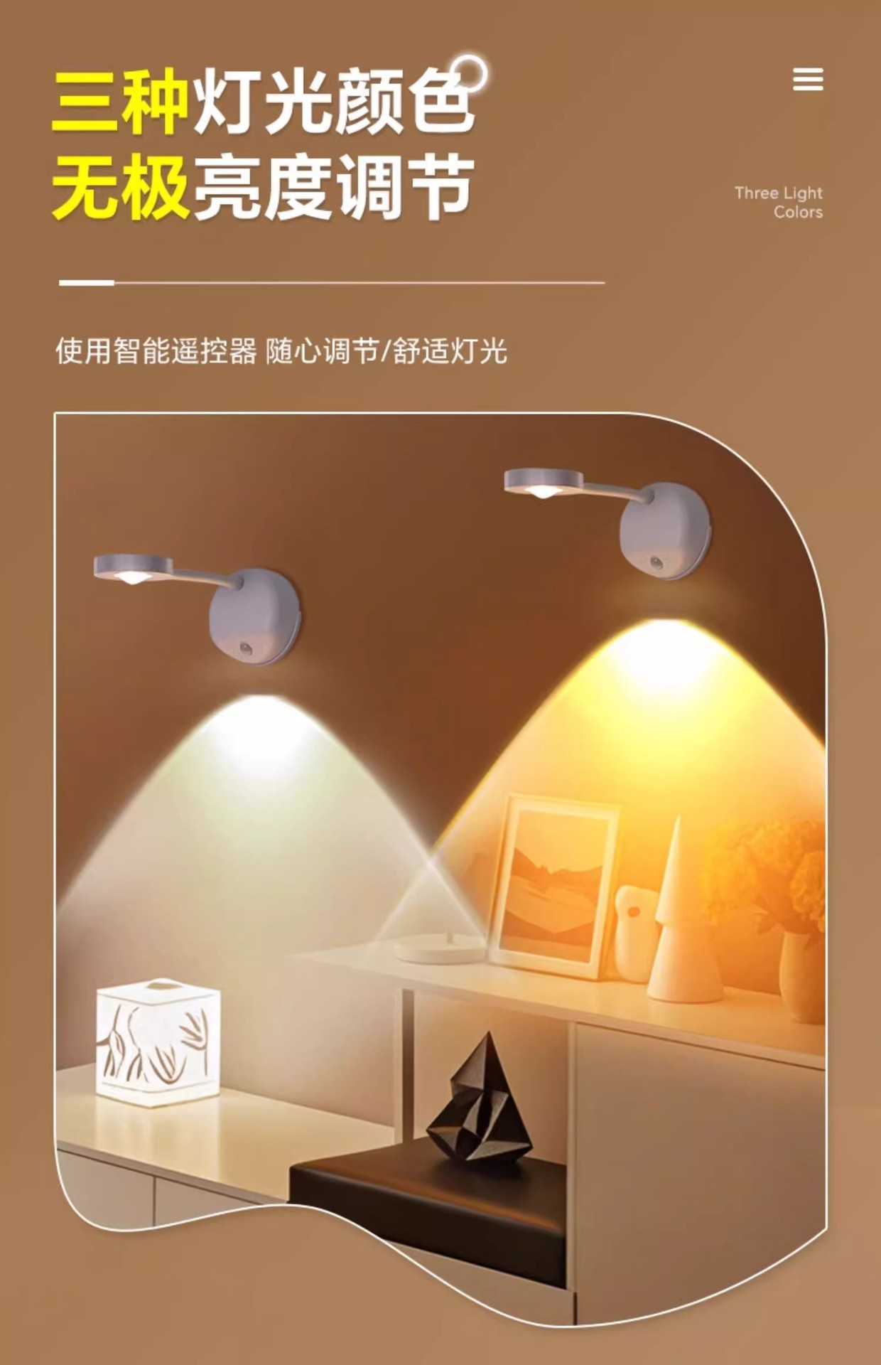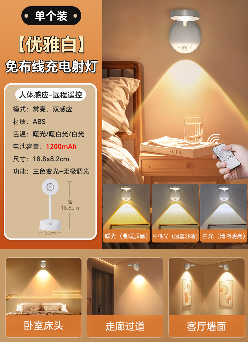 충전식 벽 램프, 주변 조명, 배선이 필요 없는 센서 램프, 무선 원격 제어, 거실 배경 벽 장식 램프, 침실 머리맡 램프스토어 가기