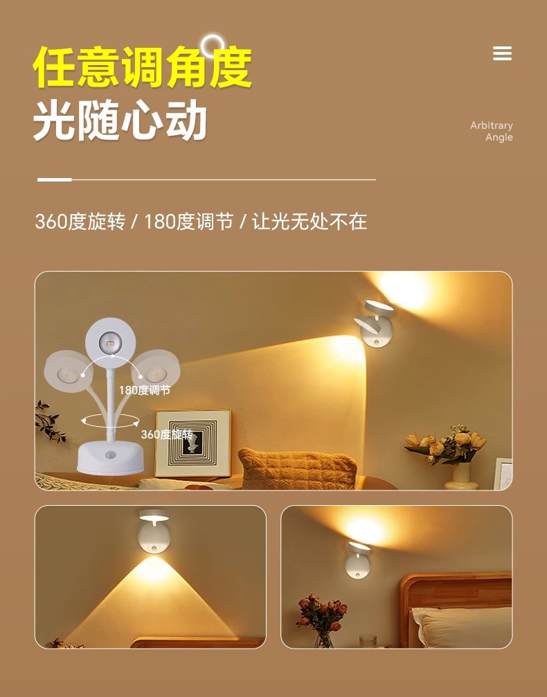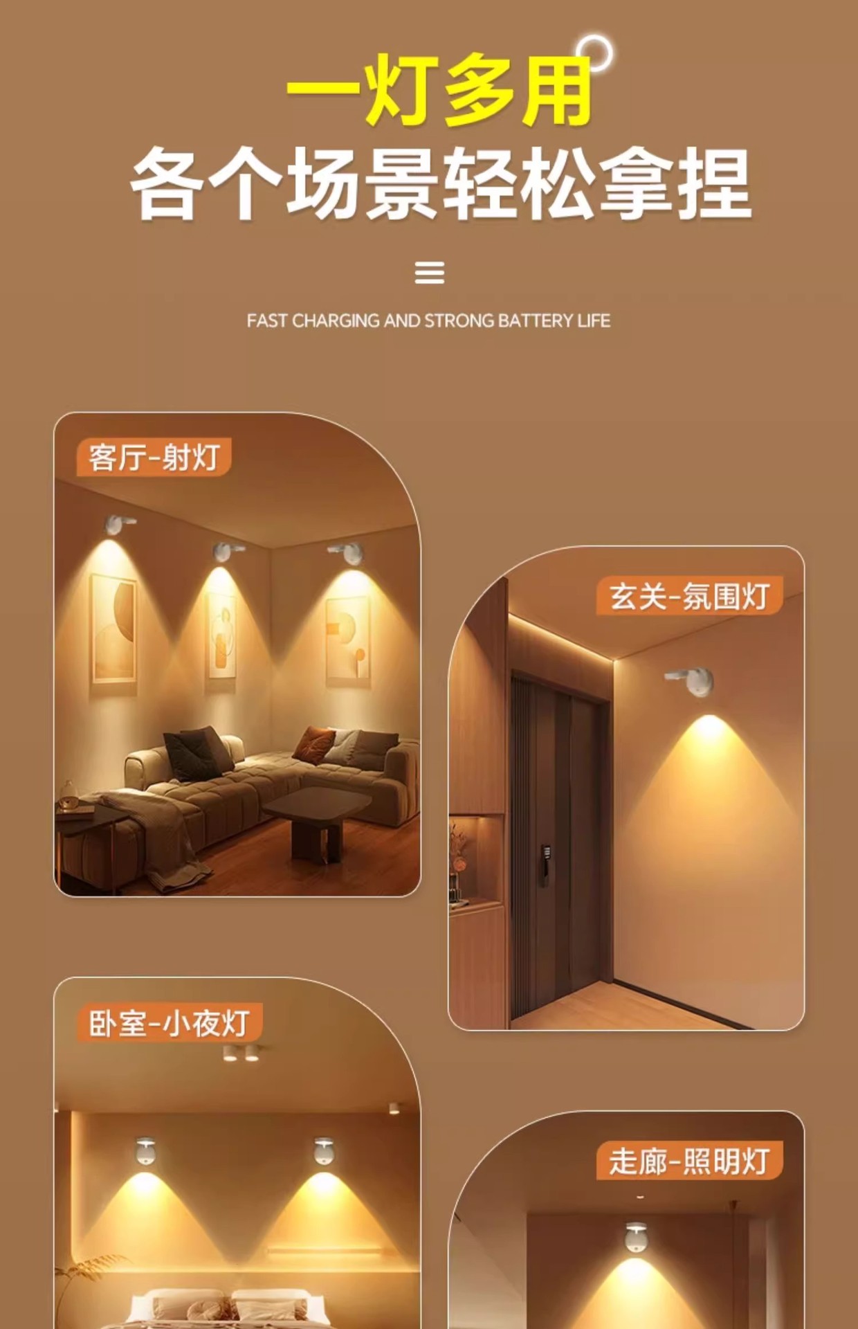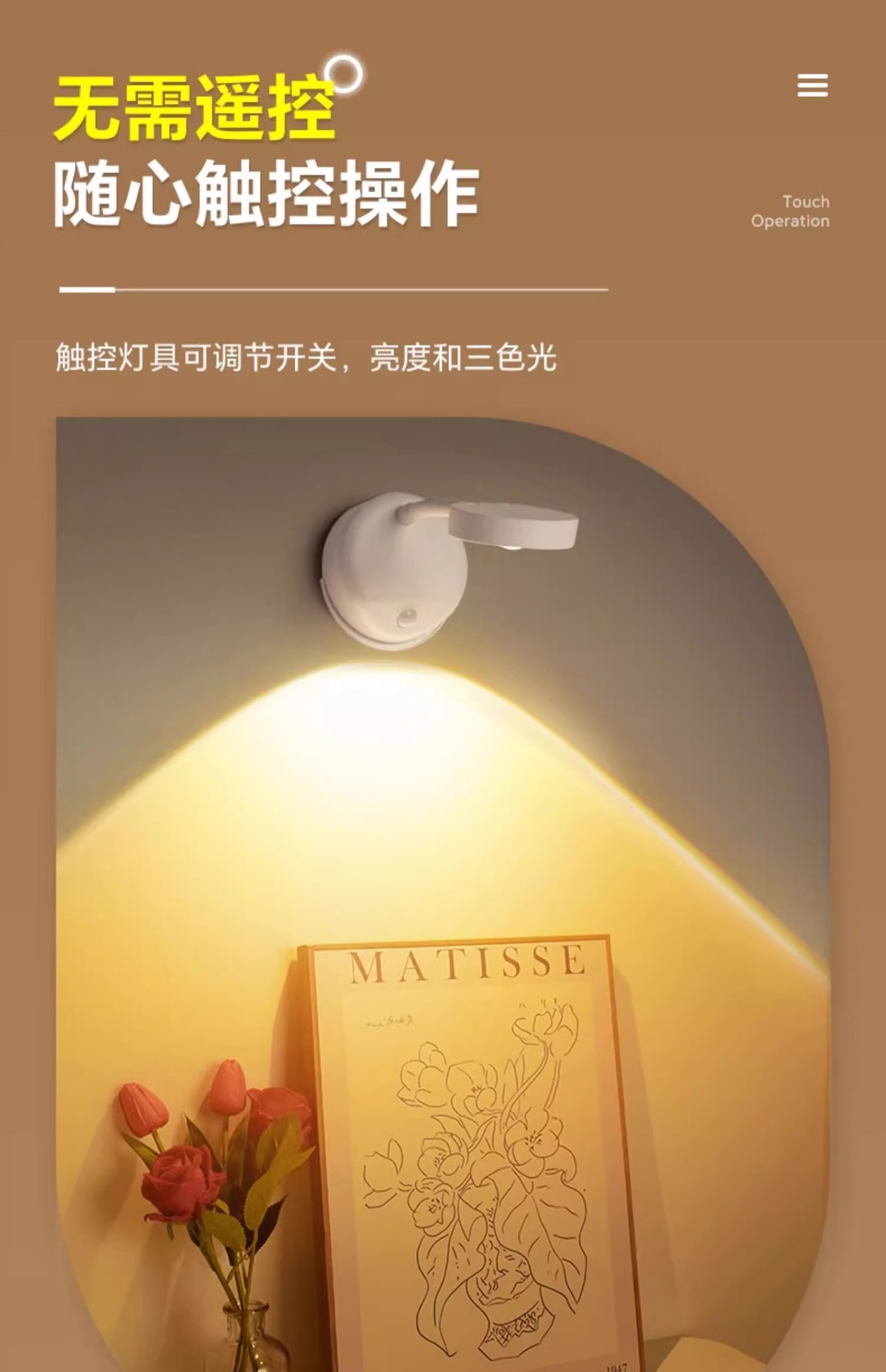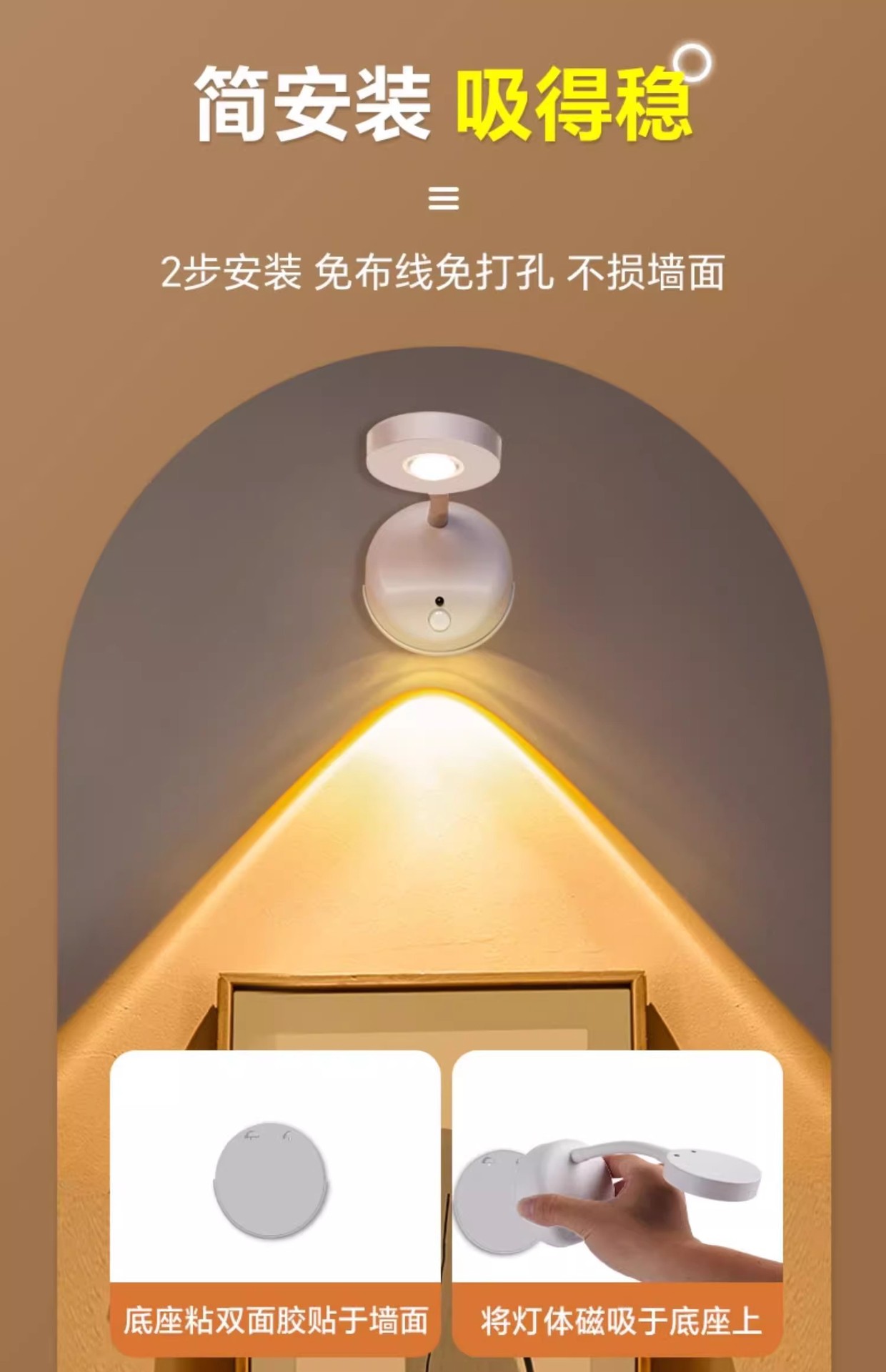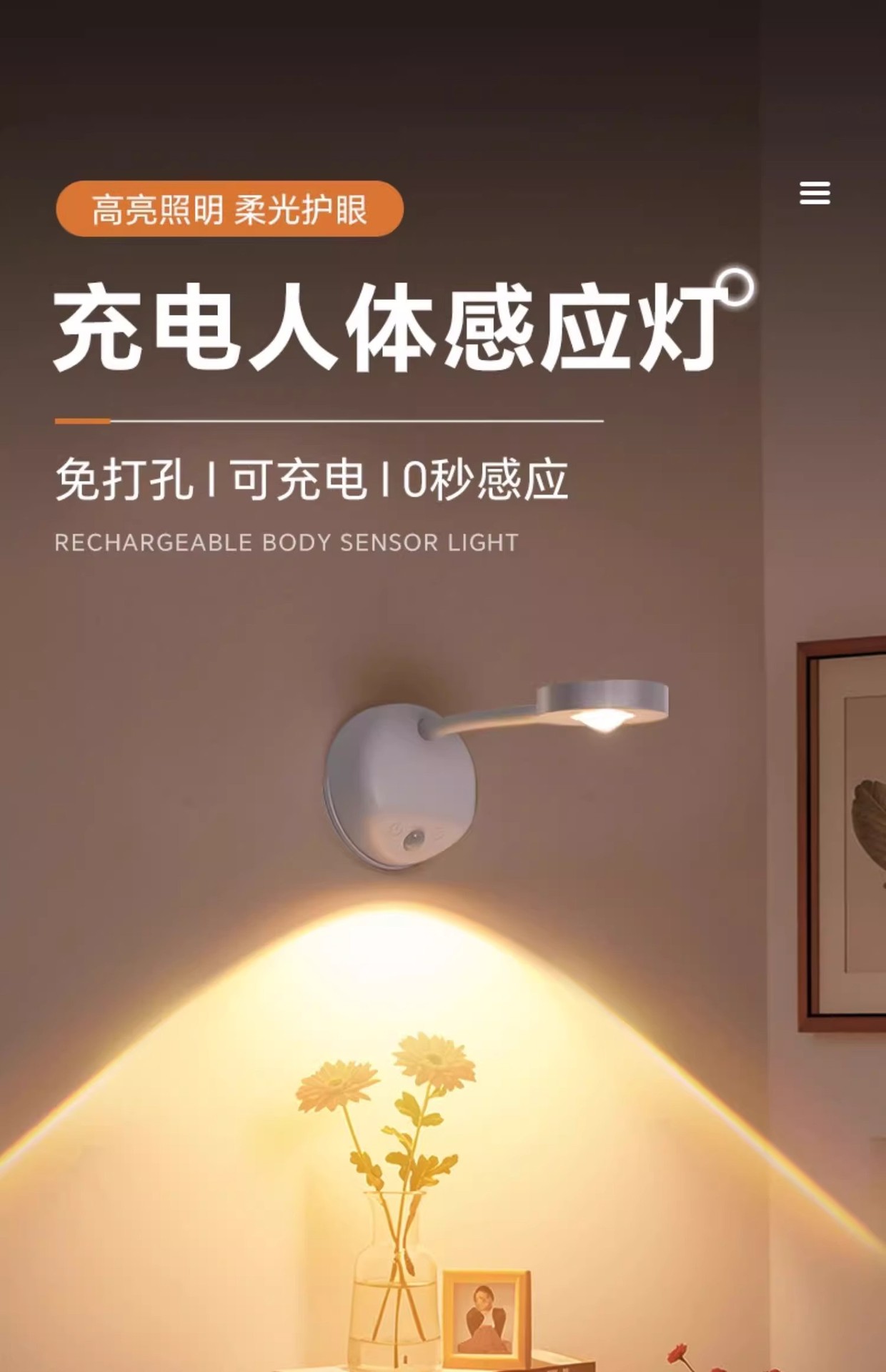 충전식 벽 램프, 주변 조명, 배선이 필요 없는 센서 램프, 무선 원격 제어, 거실 배경 벽 장식 램프, 침실 머리맡 램프스토어 가기