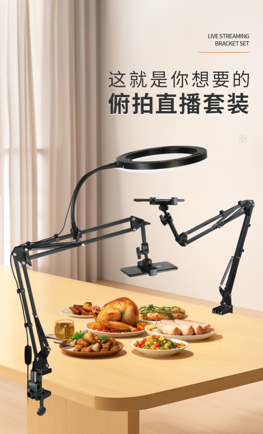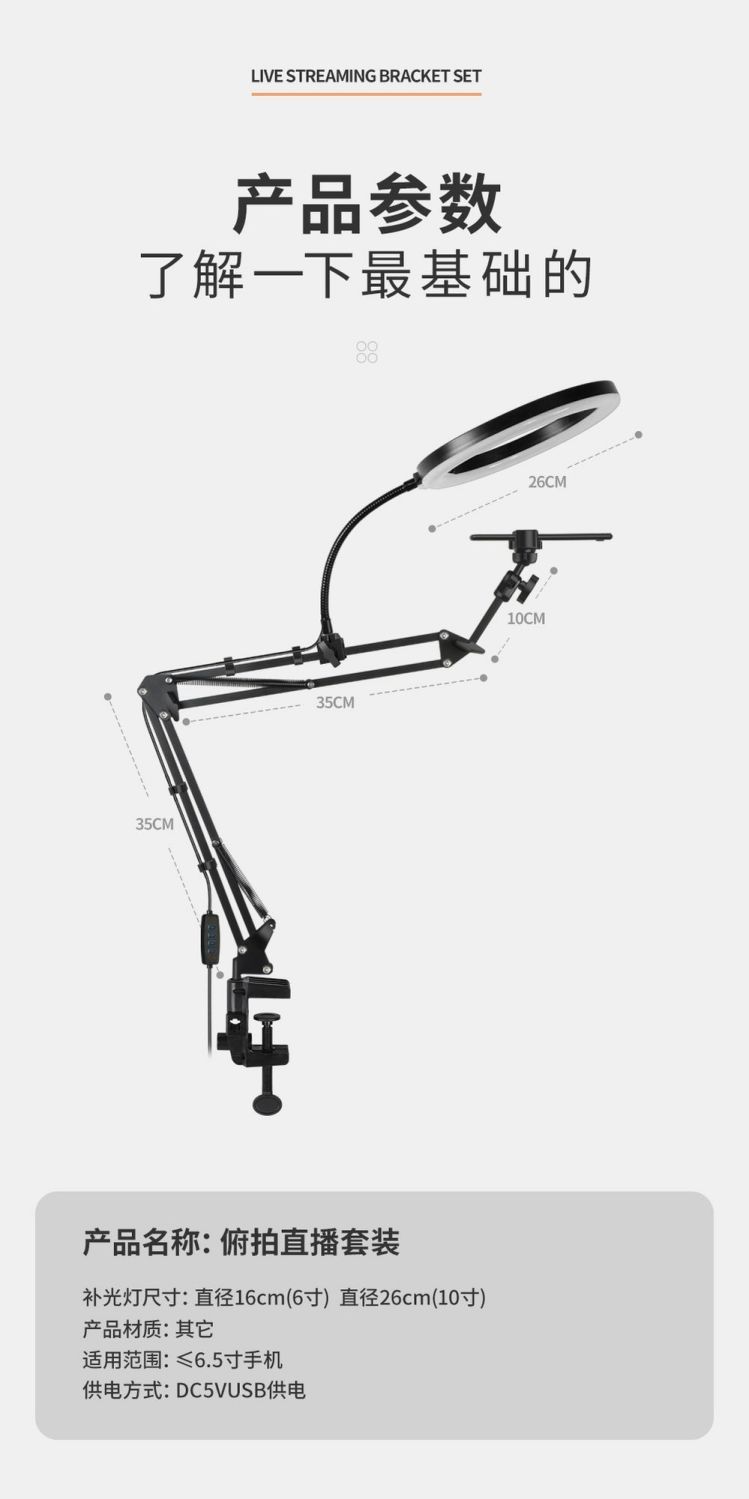 휴대 전화 오버헤드 스탠드 게으른 블루투스 원격 제어 오버헤드 스탠드 파인 오버헤드 26cm 필 라이트 제조 업체 도매