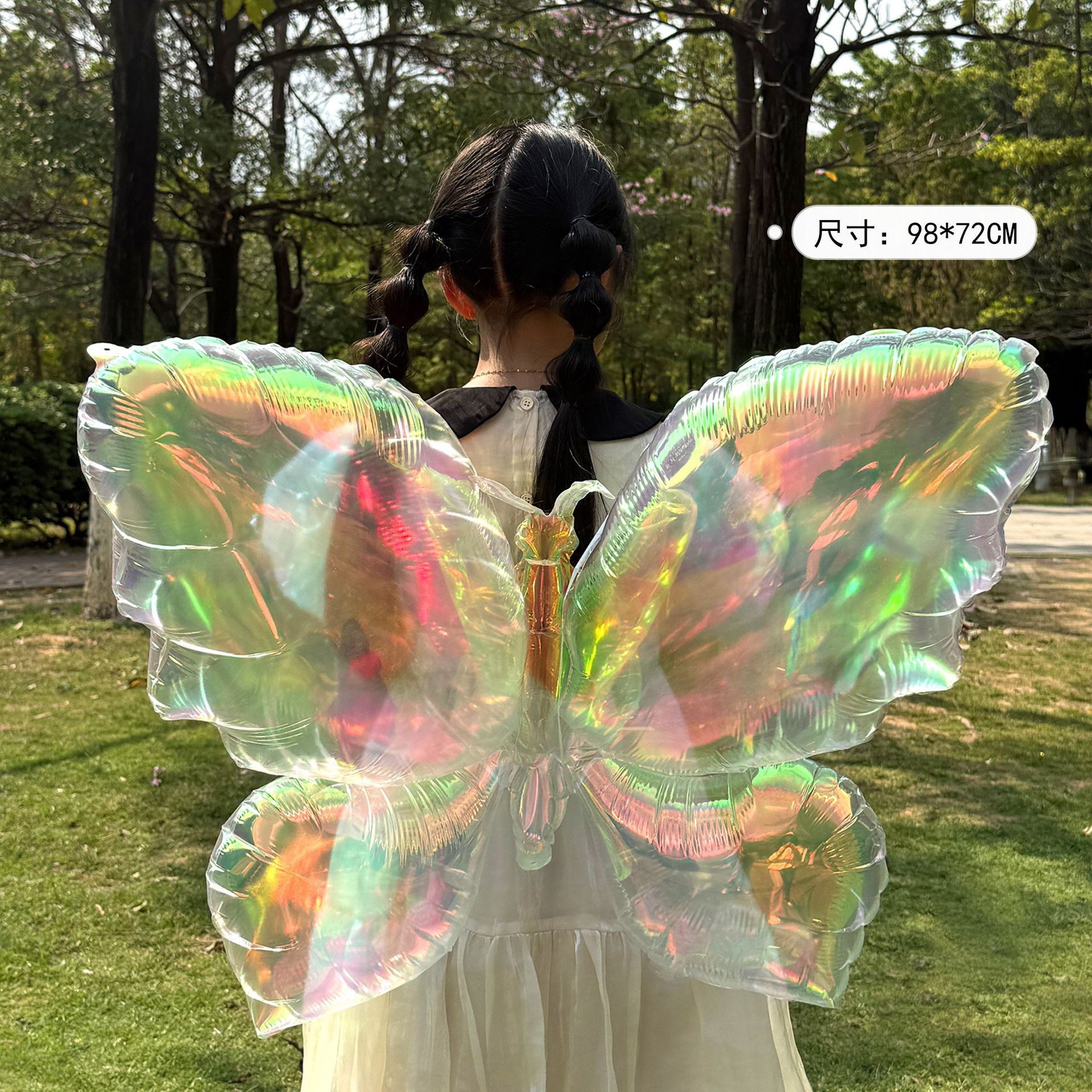 다채로운 투명 레이저 나비 날개 풍선 어린이 생일 파티 장식 장면 야외 사진 소품스토어 가기