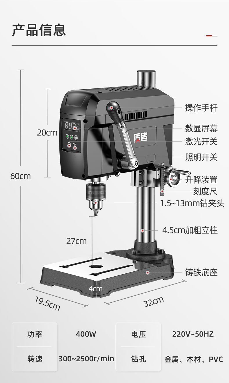 브러시리스 디지털 디스플레이 벤치 드릴 소형 가정용 밀링 머신 220v 고출력 드릴링 머신 작업대 고정밀 드릴링 머신 제조스토어 가기