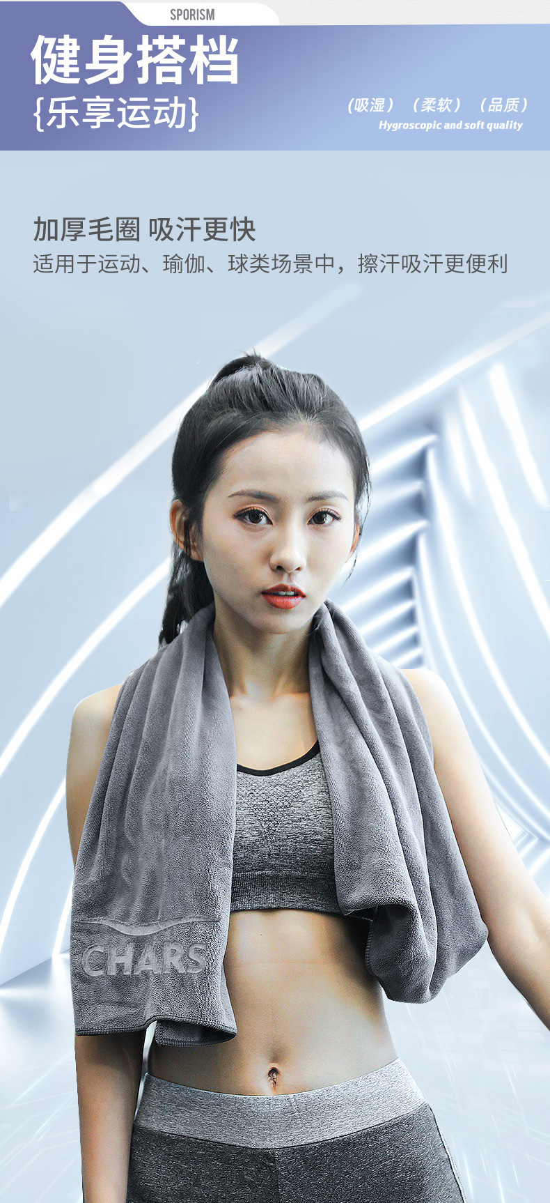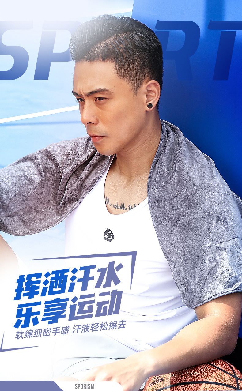 국경을 넘는 피트니스 스포츠 타월, 땀 흡수 및 피부 친화적인 패드 타월, 농구용 속건 타월, 러닝 땀 닦는 타월, 재고 도매스토어 가기
