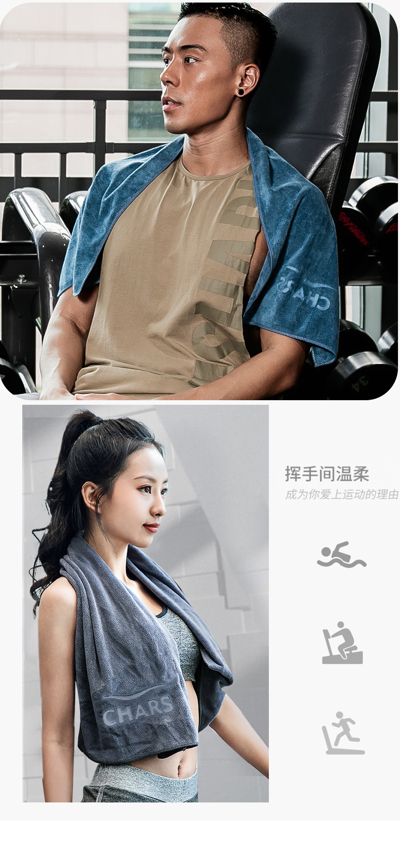 健身运动毛巾男女吸汗健身房垫巾篮球速干巾跑步加大擦汗巾q0124