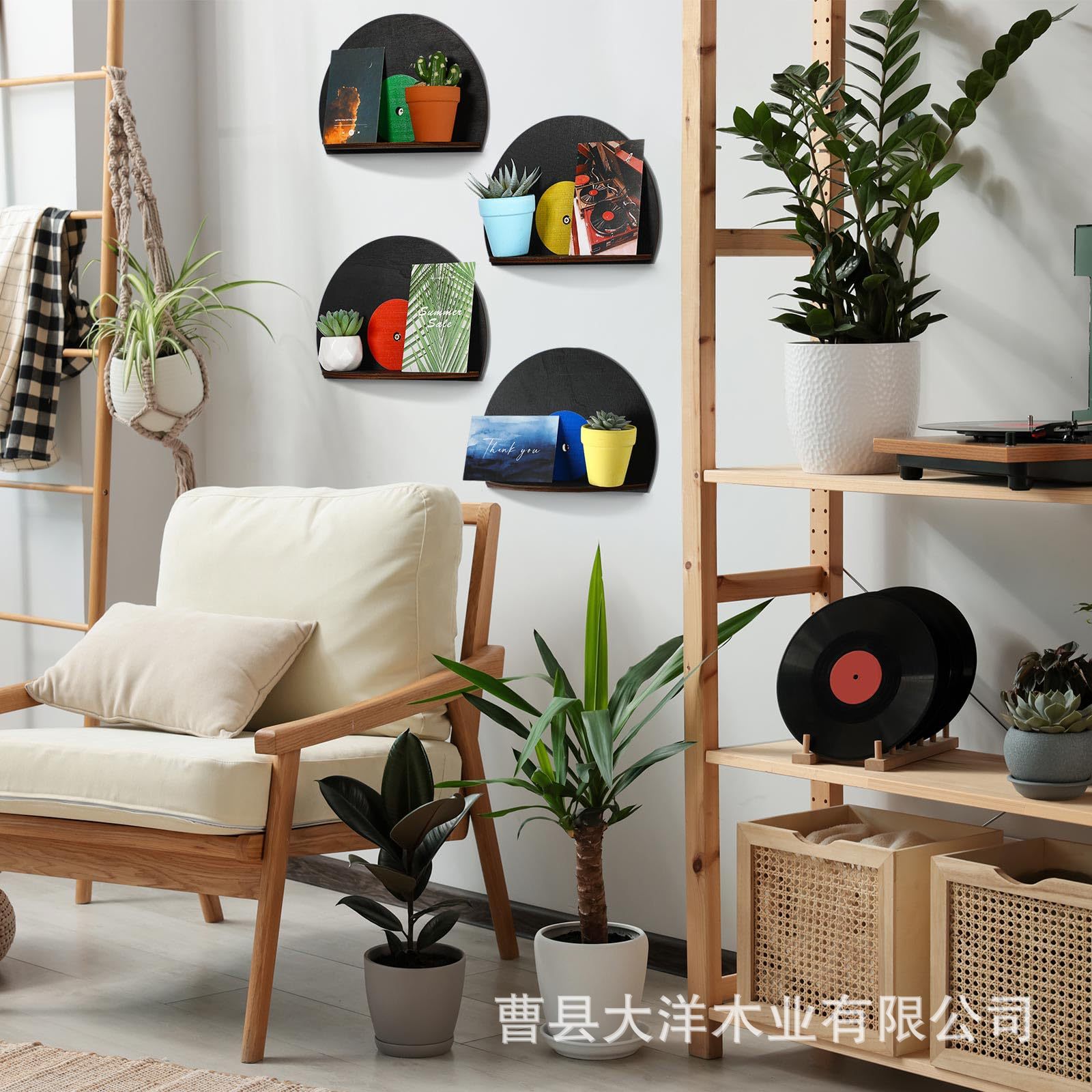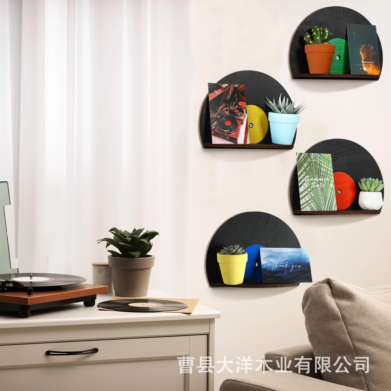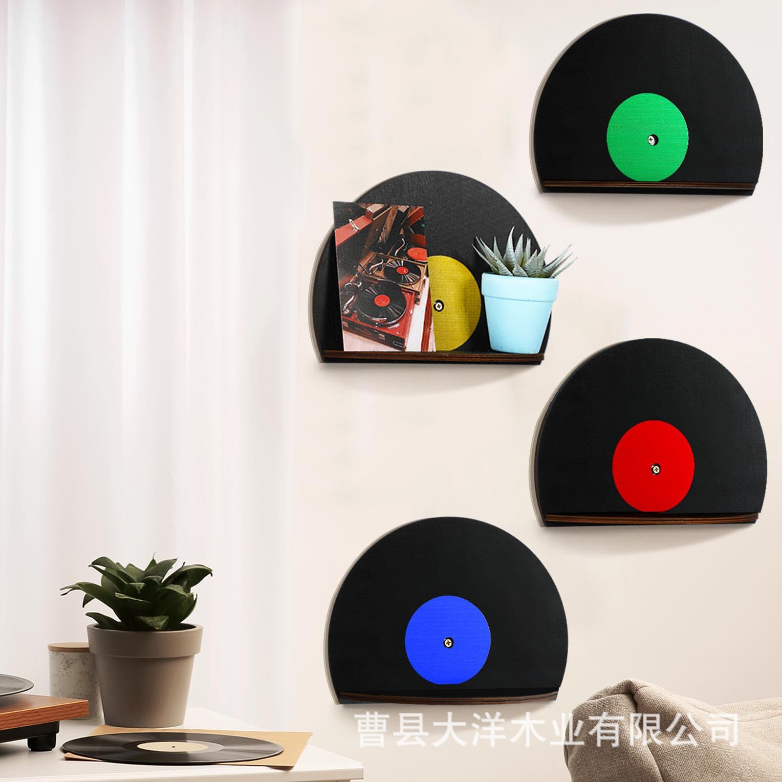 나무 비닐 레코드 모양의 스토리지 랙 벽걸이 거실 비닐 레코드 벽 장식 스토리지 랙