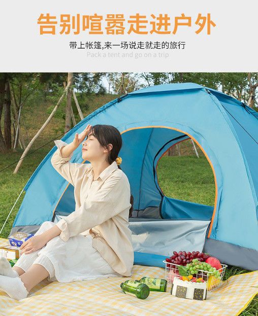 야외용 3~4인용 자동 캠핑 텐트, 2인용 야외용 두꺼운 퀵 오픈 방풍 및 자외선 차단 텐트스토어 가기