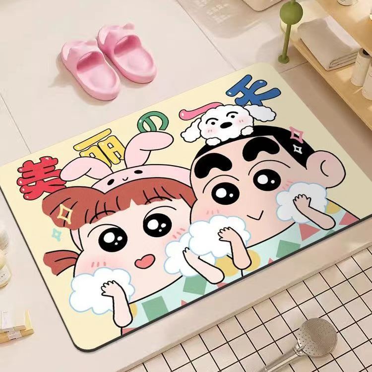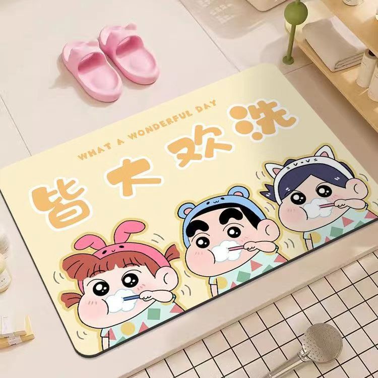 만화 크레용 신짱 규조토 진흙 욕실 바닥 매트 흡수성 미끄럼 방지 욕실 발 매트 화장실 문 속건성 매트스토어 가기