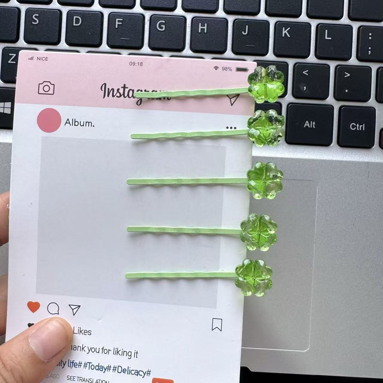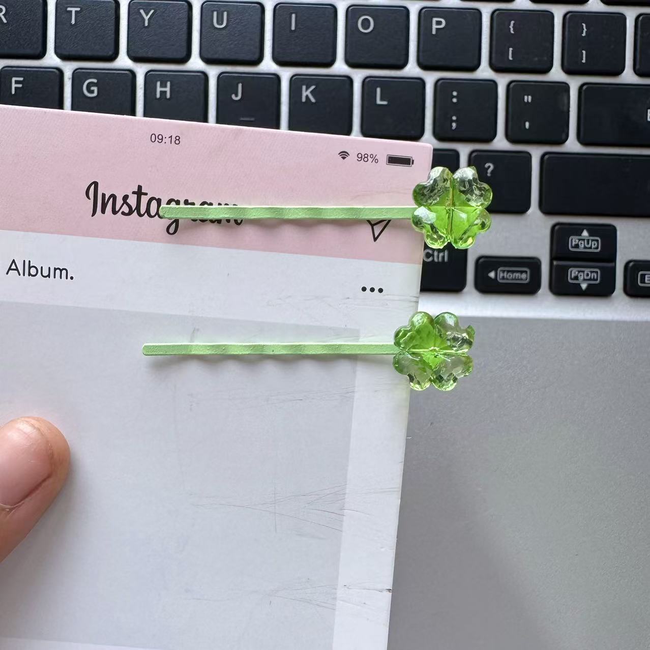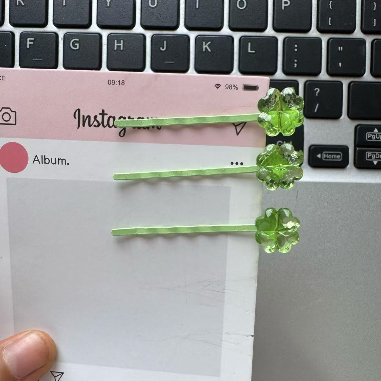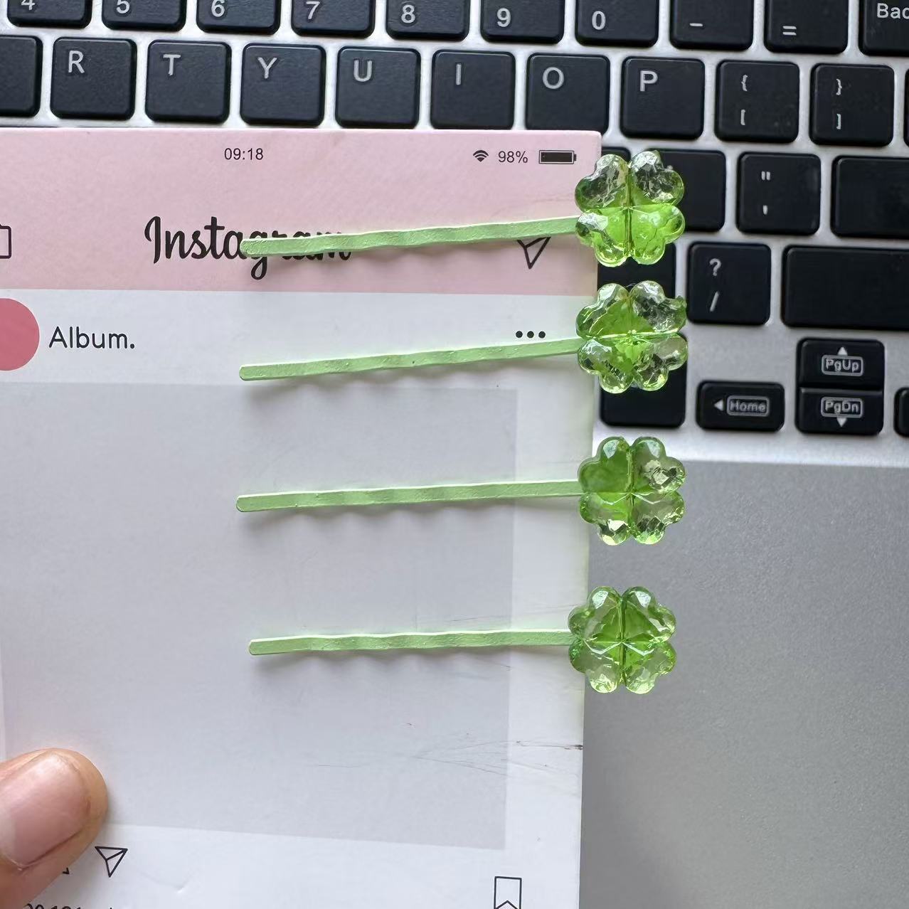 귀여운 녹색 신선한 네잎 클로버 사이드 머리핀 불규칙한 소녀 여름 머리 장식 단일 머리핀 앞머리 달콤한스토어 가기