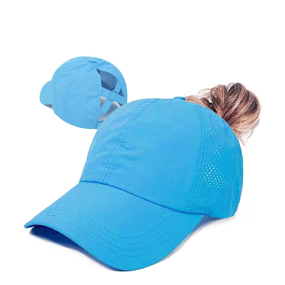국경 간 여성용 속건성 모자 통기성 모자 야구 모자 뒷끈이 있는 크로스 포니테일 모자 스포츠 모자