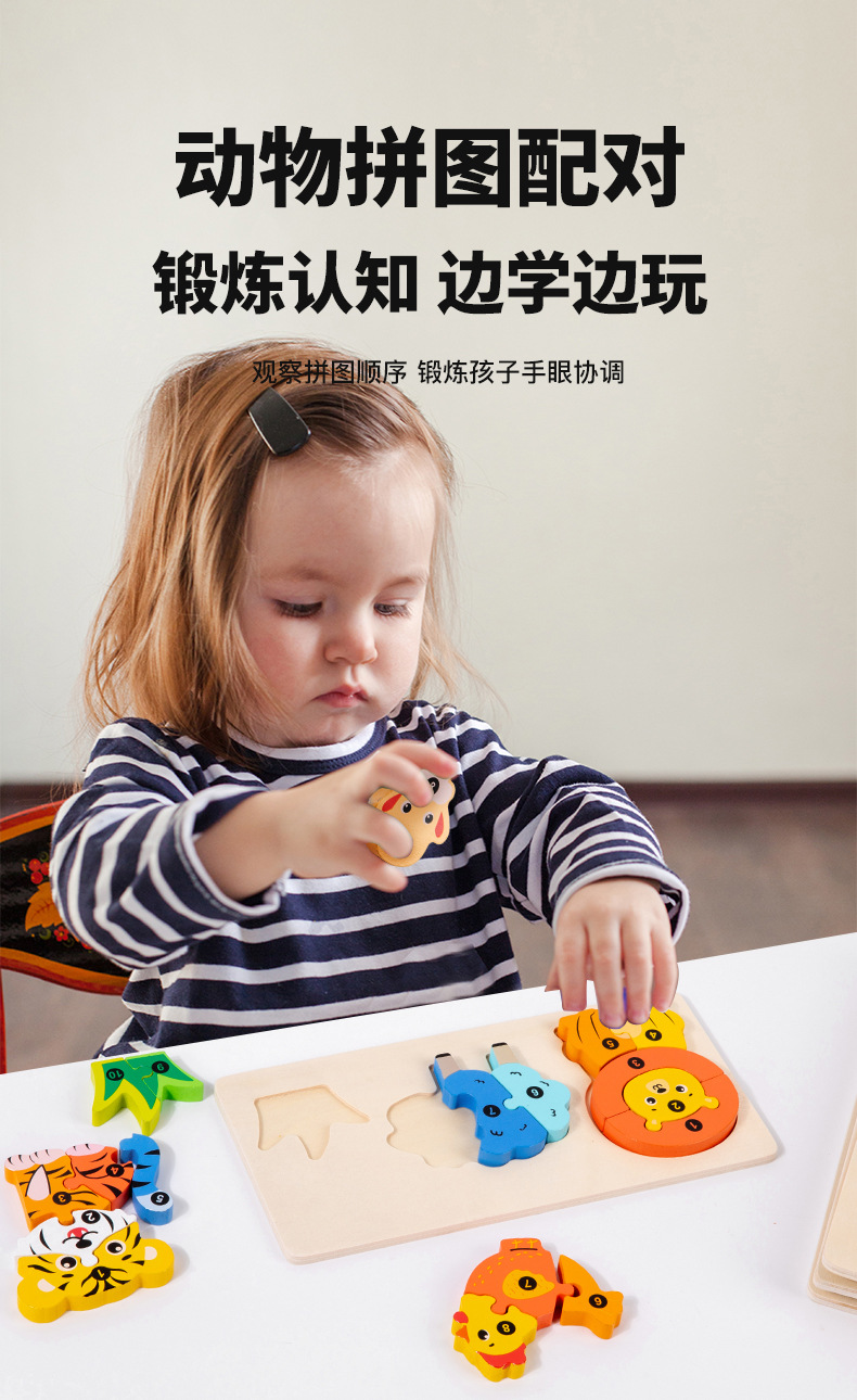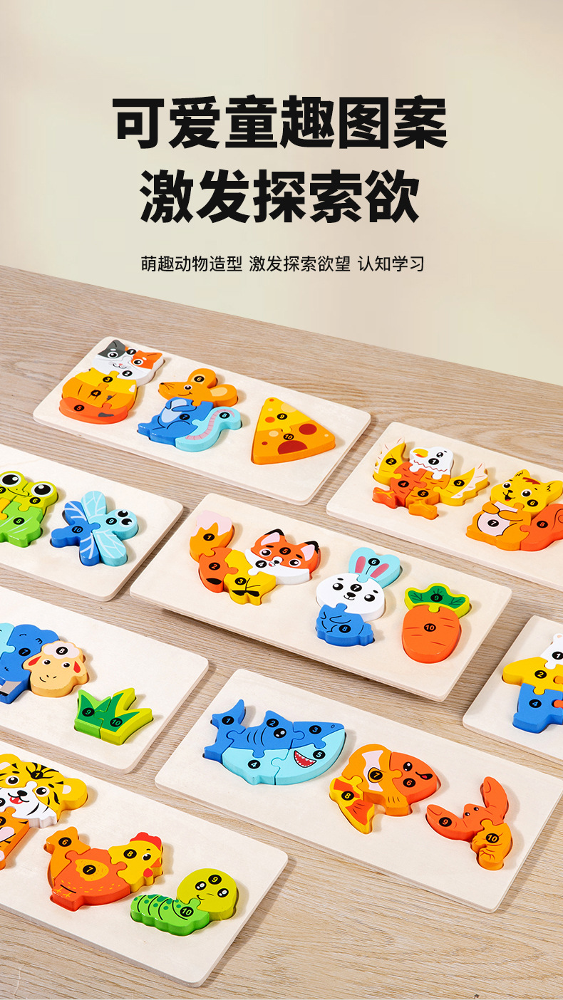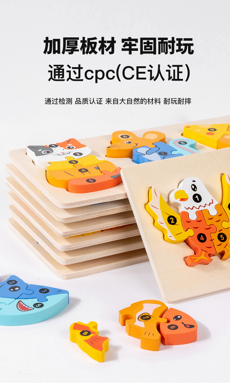 국경 간 CPC CE 동물 곤충 대형 빌딩 블록 3D 입체 퍼즐 유치원 2 조기 교육 계발 나무 장난감