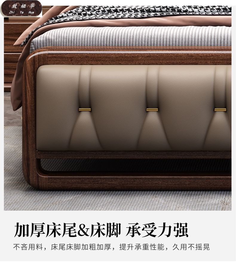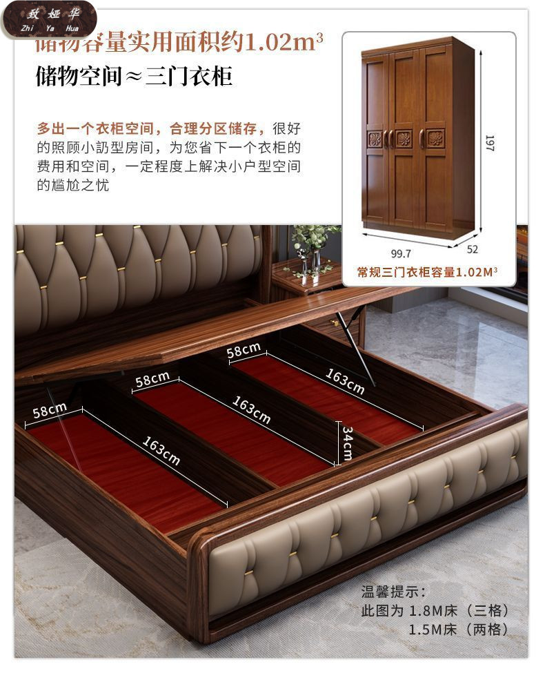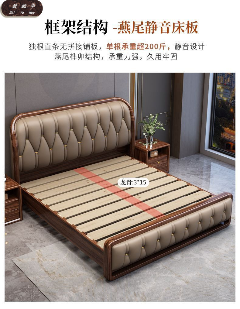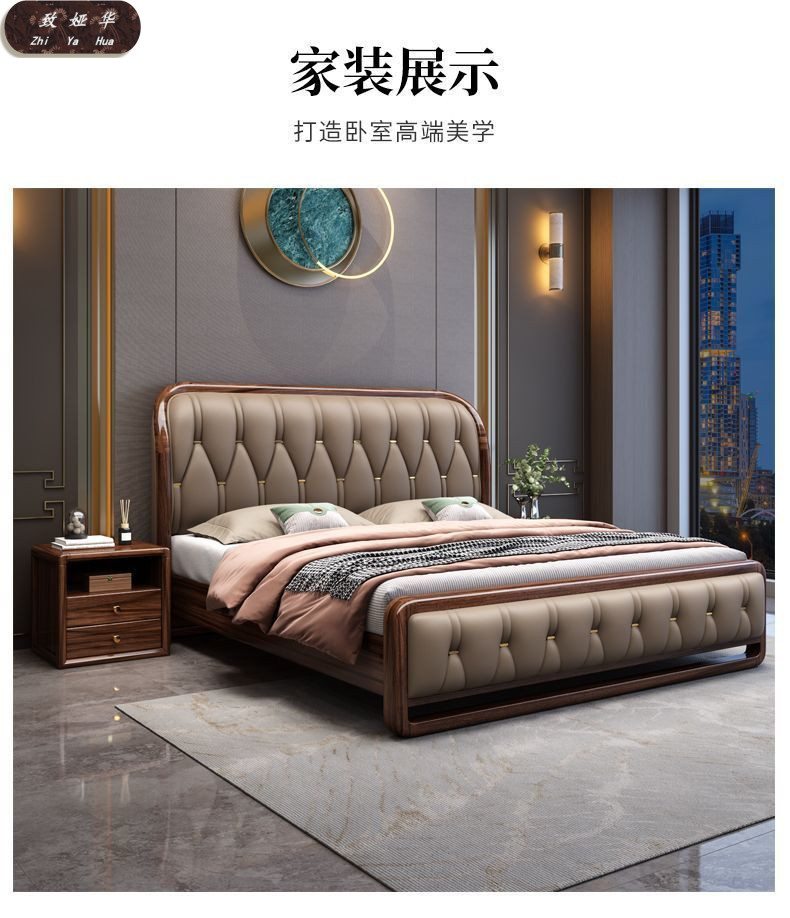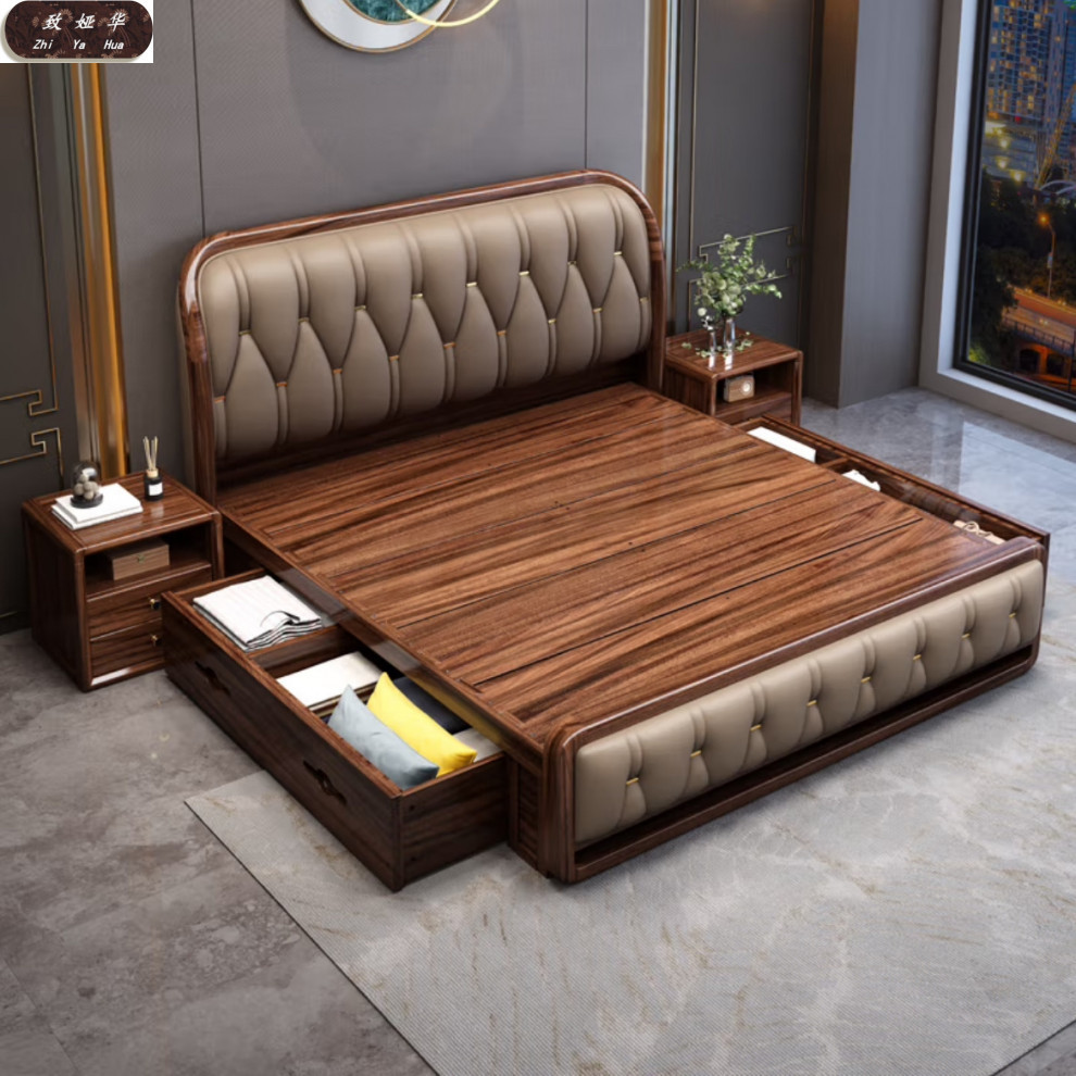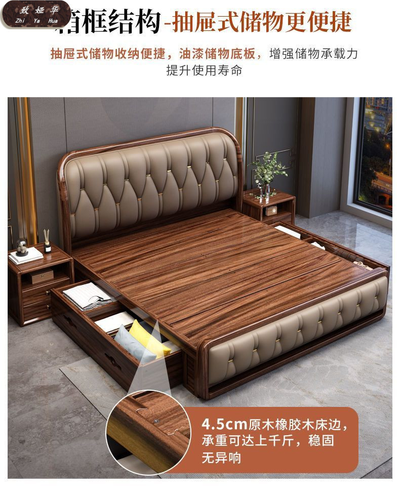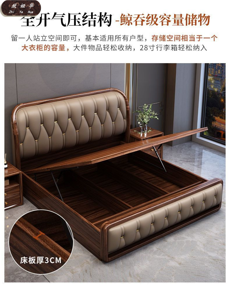 현대적인 미니멀리스트 1.8m 수납 소프트 백 침대 더블 침대 새로운 중국 스타일 1.5m 대형 웨딩 침대 금 실크 백단 단단한 나무 침대스토어 가기
