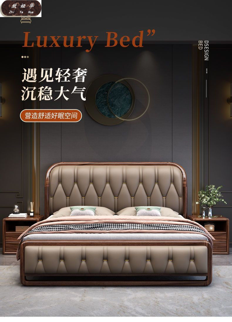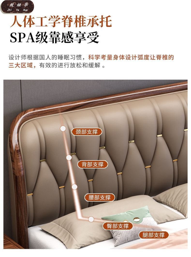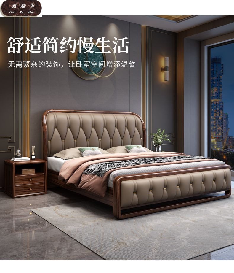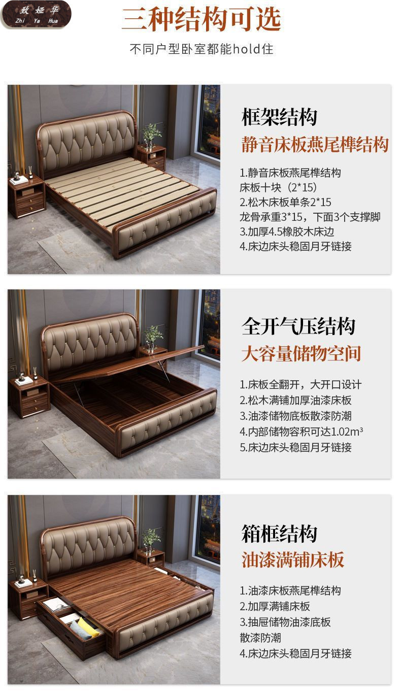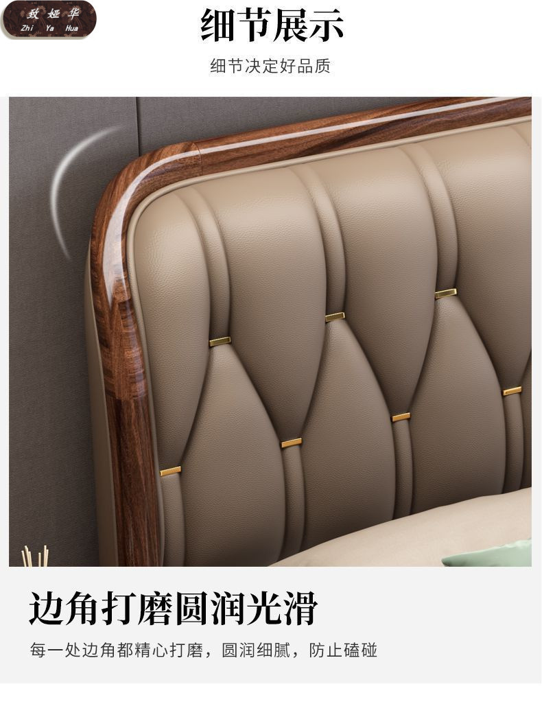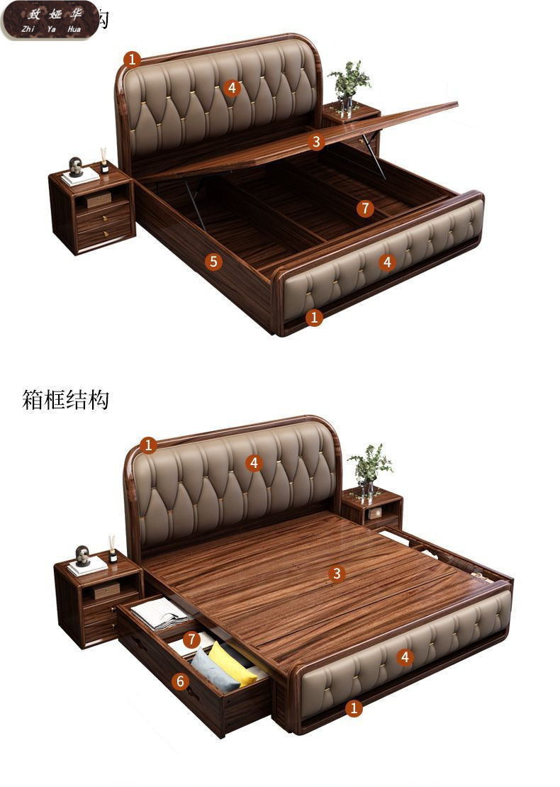 현대적인 미니멀리스트 1.8m 수납 소프트 백 침대 더블 침대 새로운 중국 스타일 1.5m 대형 웨딩 침대 금 실크 백단 단단한 나무 침대스토어 가기
