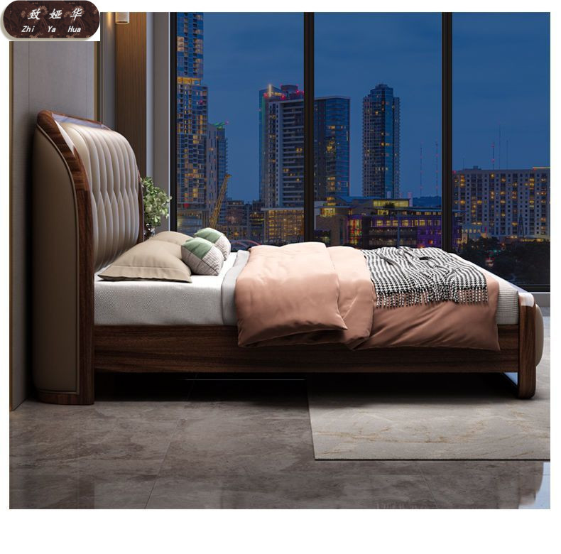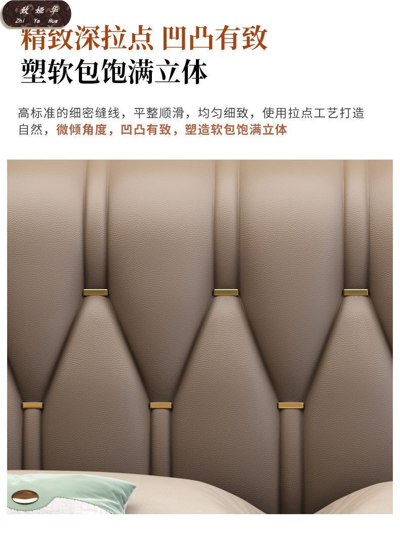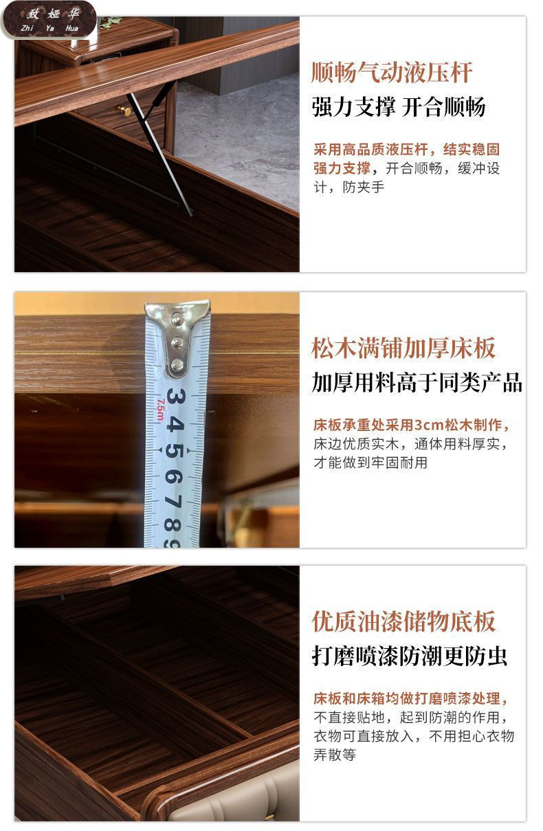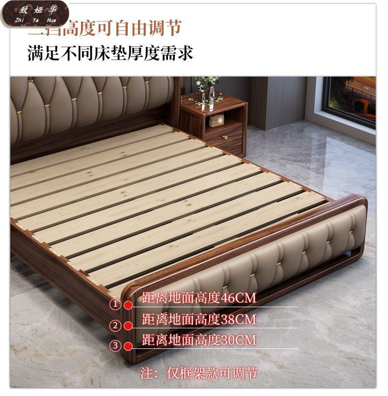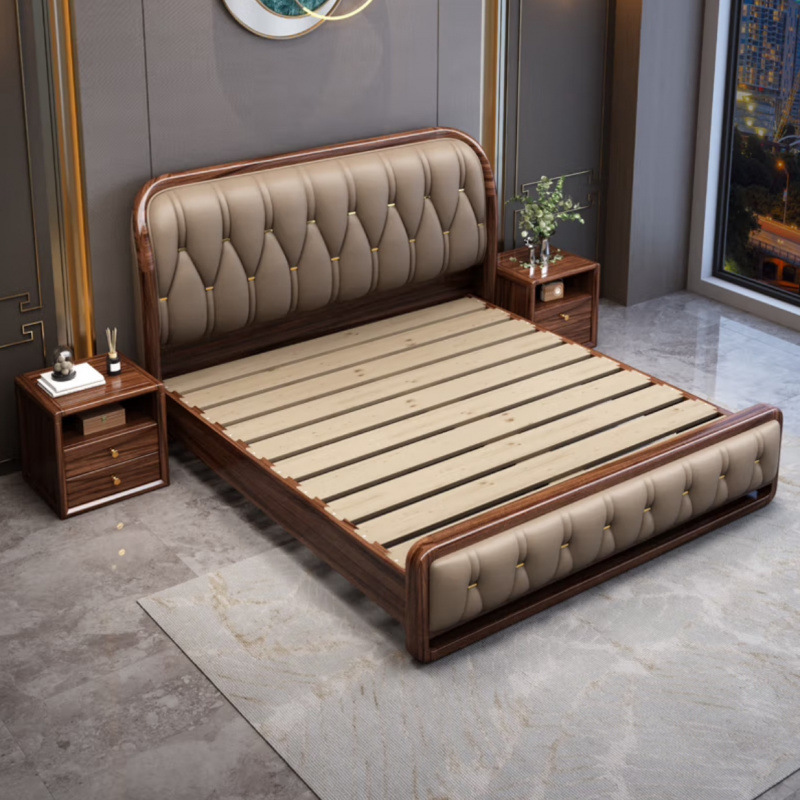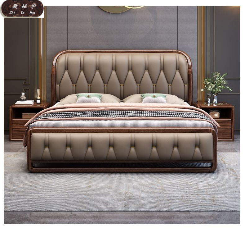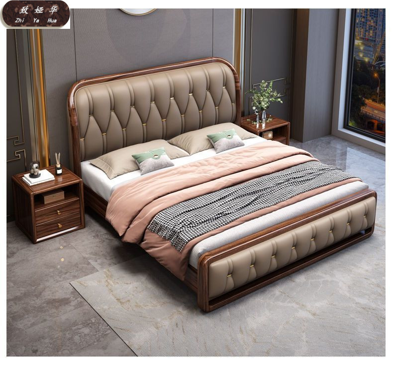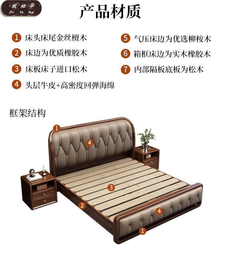 현대적인 미니멀리스트 1.8m 수납 소프트 백 침대 더블 침대 새로운 중국 스타일 1.5m 대형 웨딩 침대 금 실크 백단 단단한 나무 침대스토어 가기