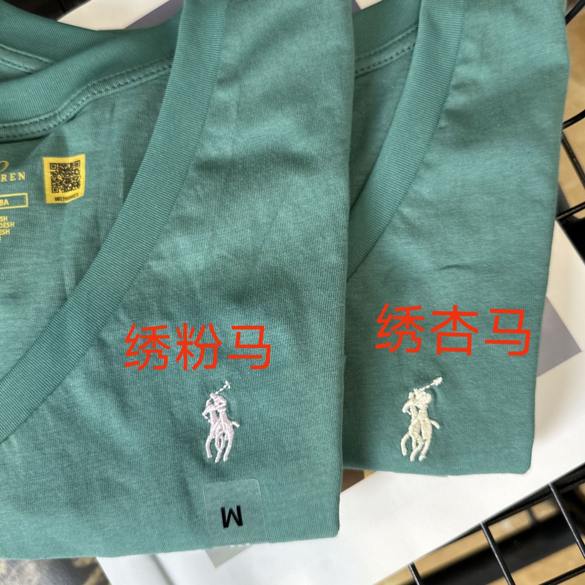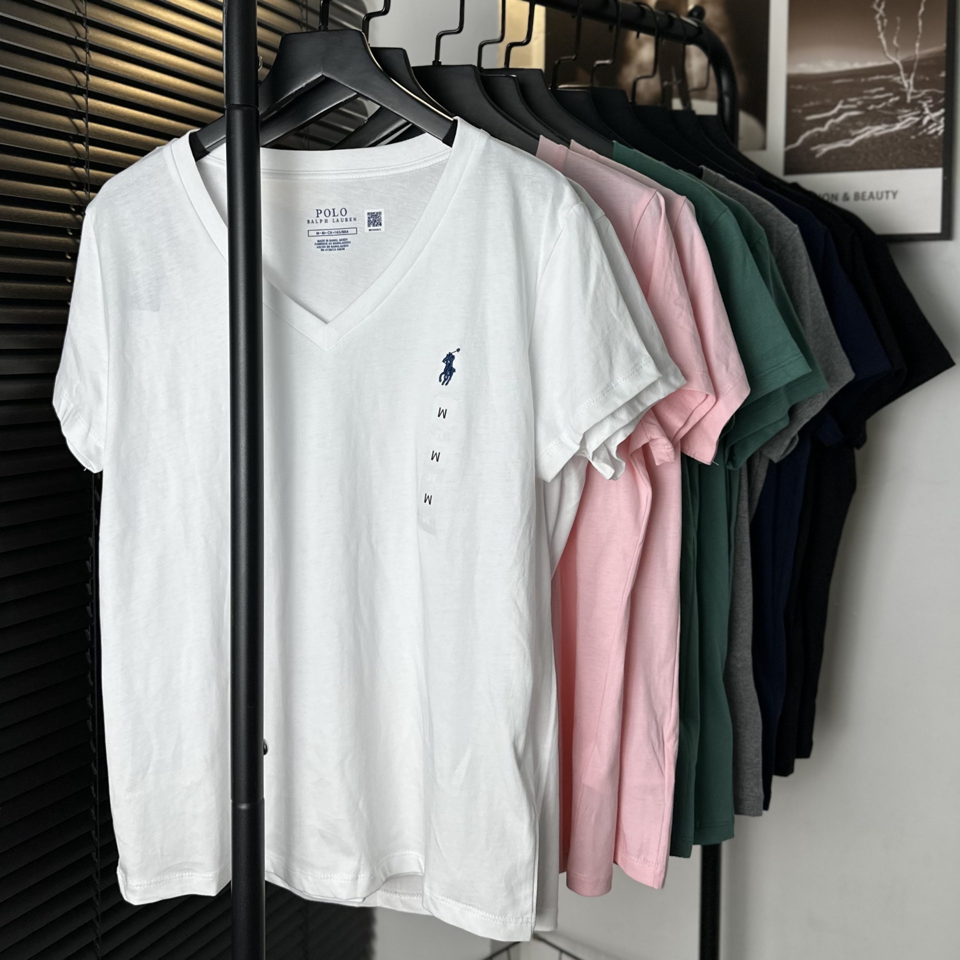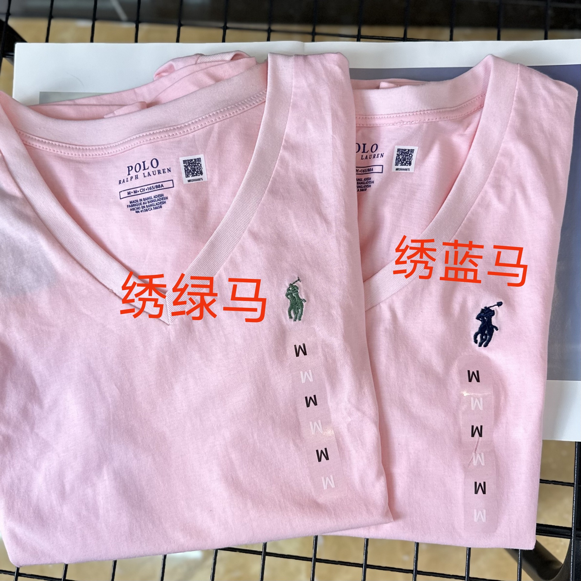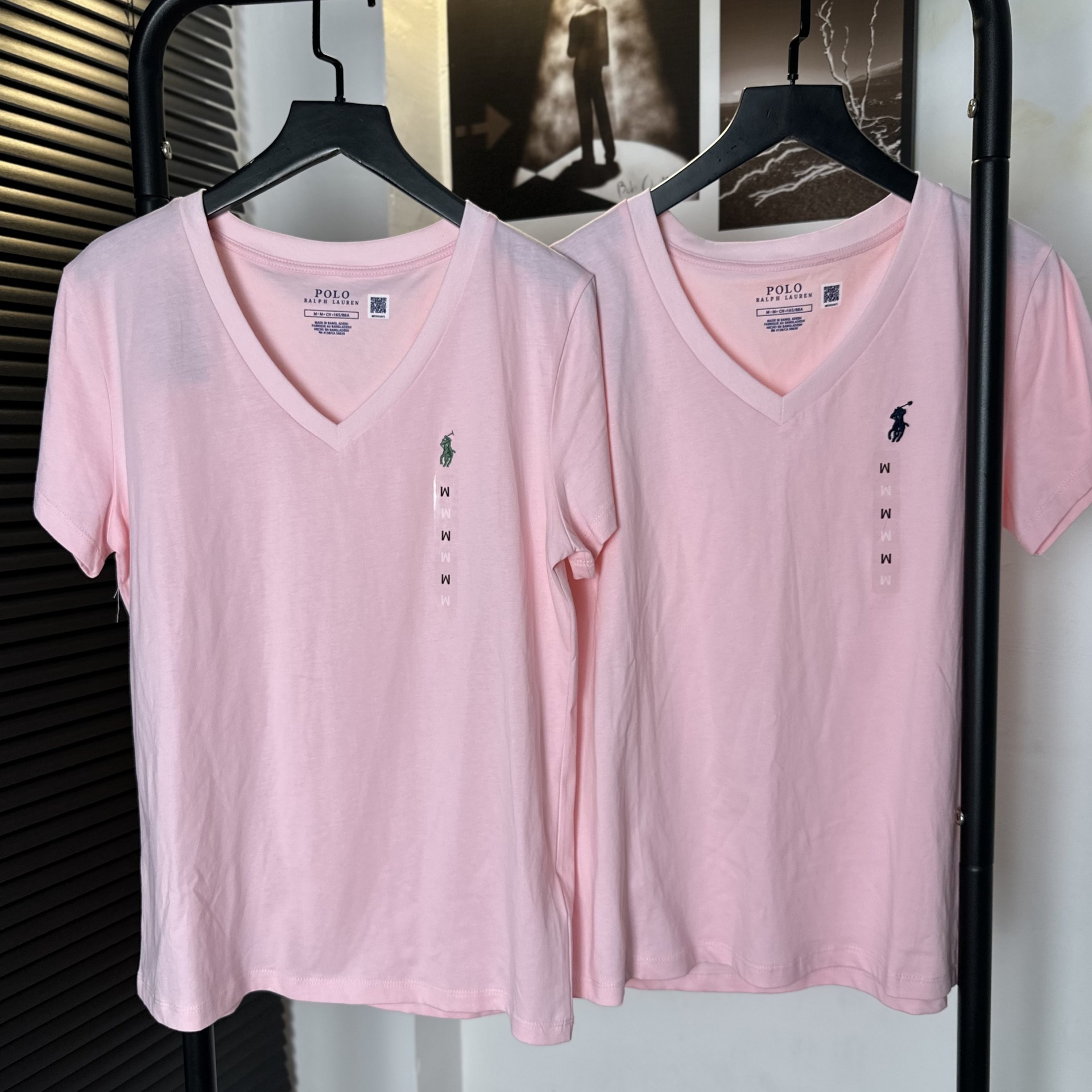 26 오리지널 수출용품, 스캔코드가 있는 100% 면 자수 포니 로고 V넥 티셔츠, 편안하고 얇고 통기성이 좋은 심플한 여성용 상의