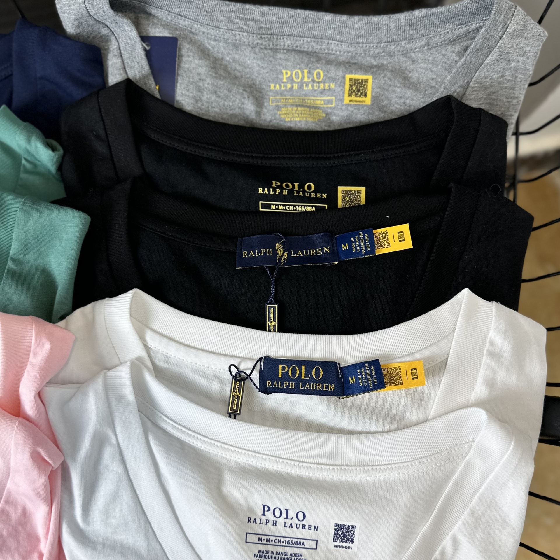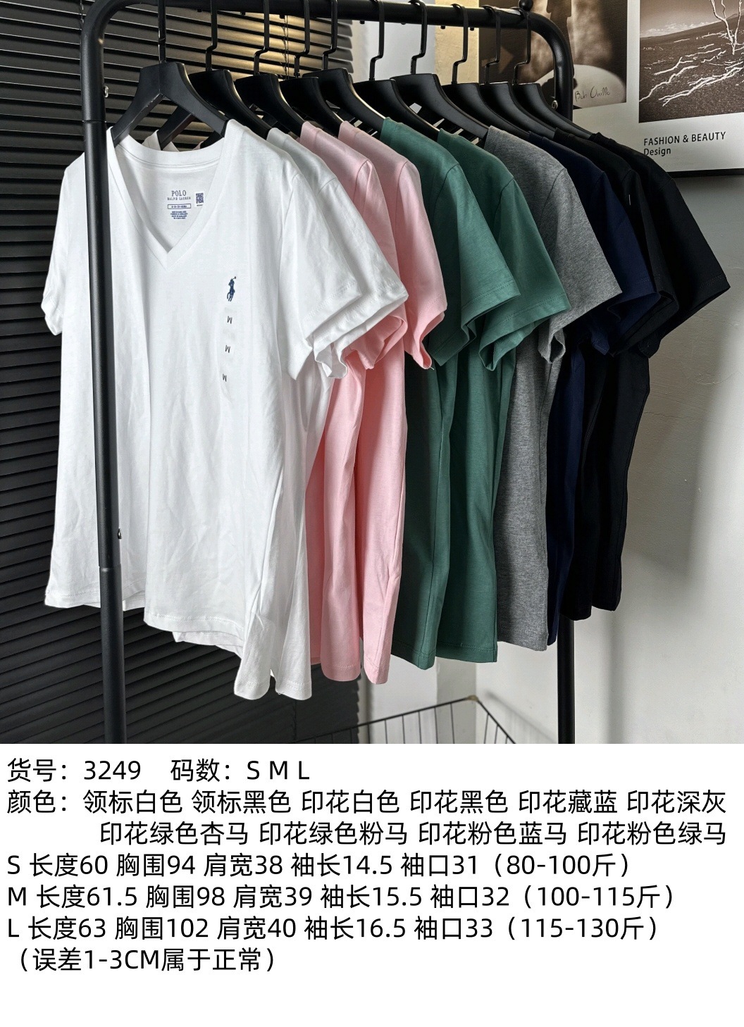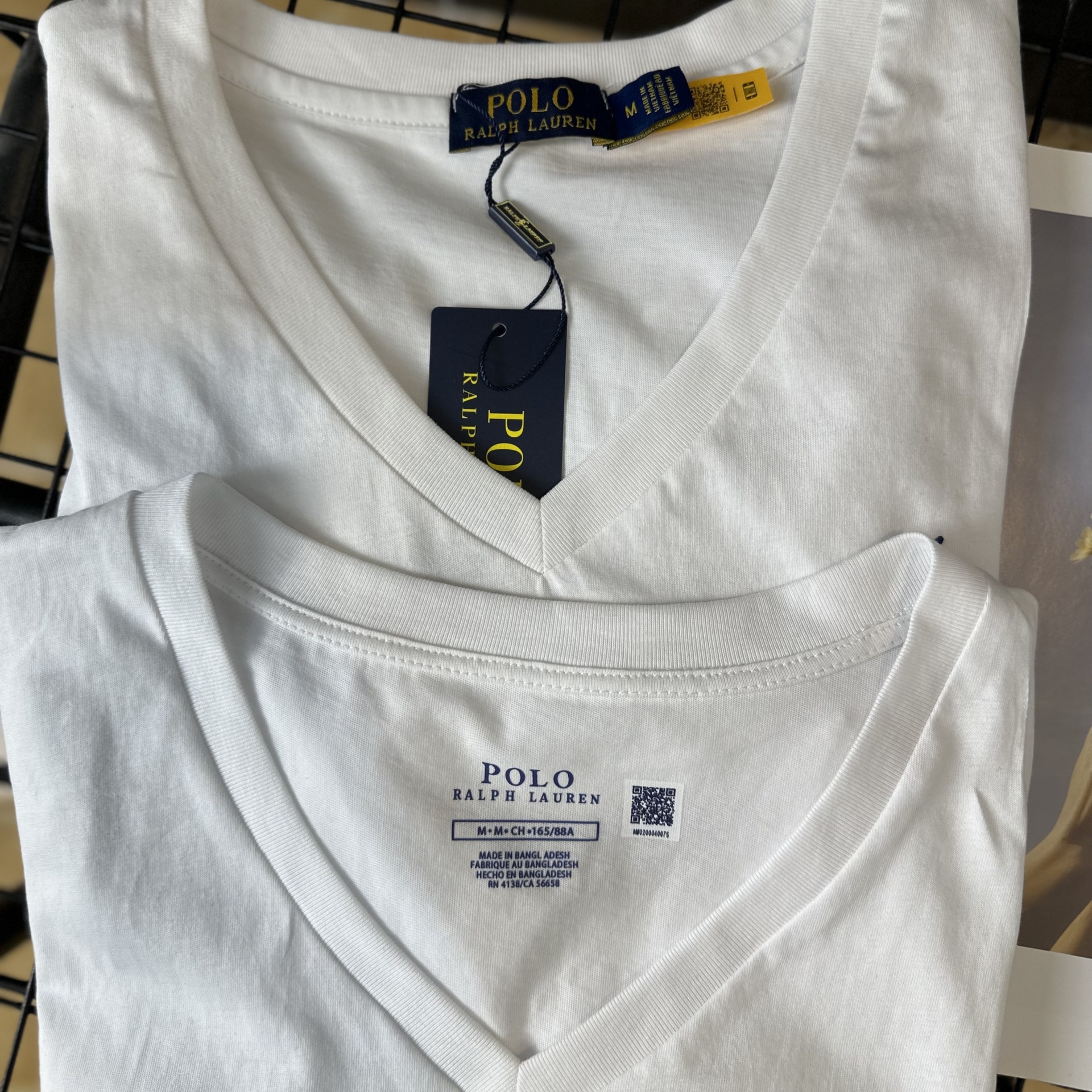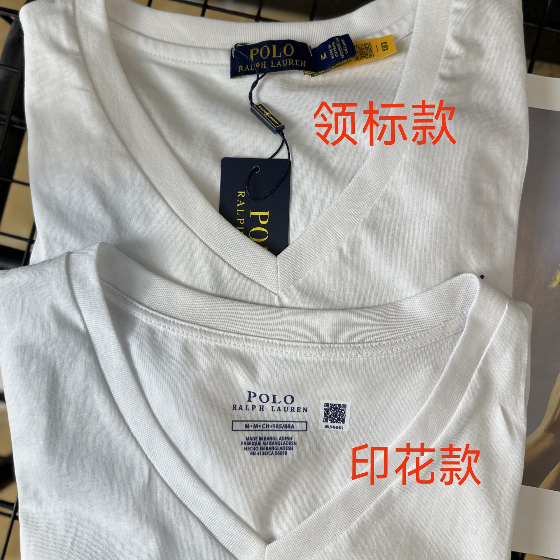26 오리지널 수출용품, 스캔코드가 있는 100% 면 자수 포니 로고 V넥 티셔츠, 편안하고 얇고 통기성이 좋은 심플한 여성용 상의