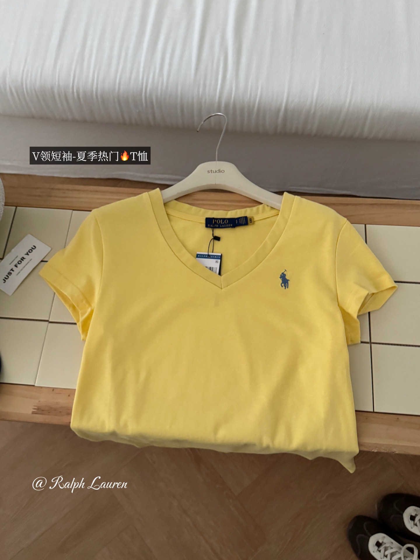 26 오리지널 수출용품, 스캔코드가 있는 100% 면 자수 포니 로고 V넥 티셔츠, 편안하고 얇고 통기성이 좋은 심플한 여성용 상의스토어 가기