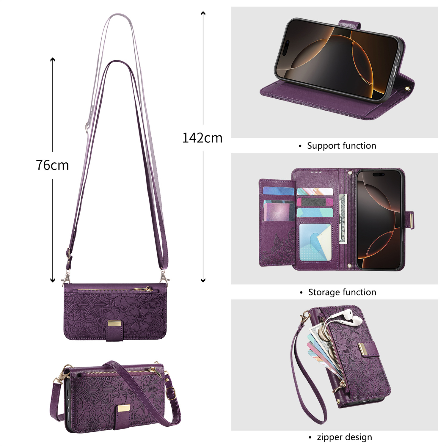 • 보라색 이중 랜야드 조합(크로스바디 + 짧은 랜야드)