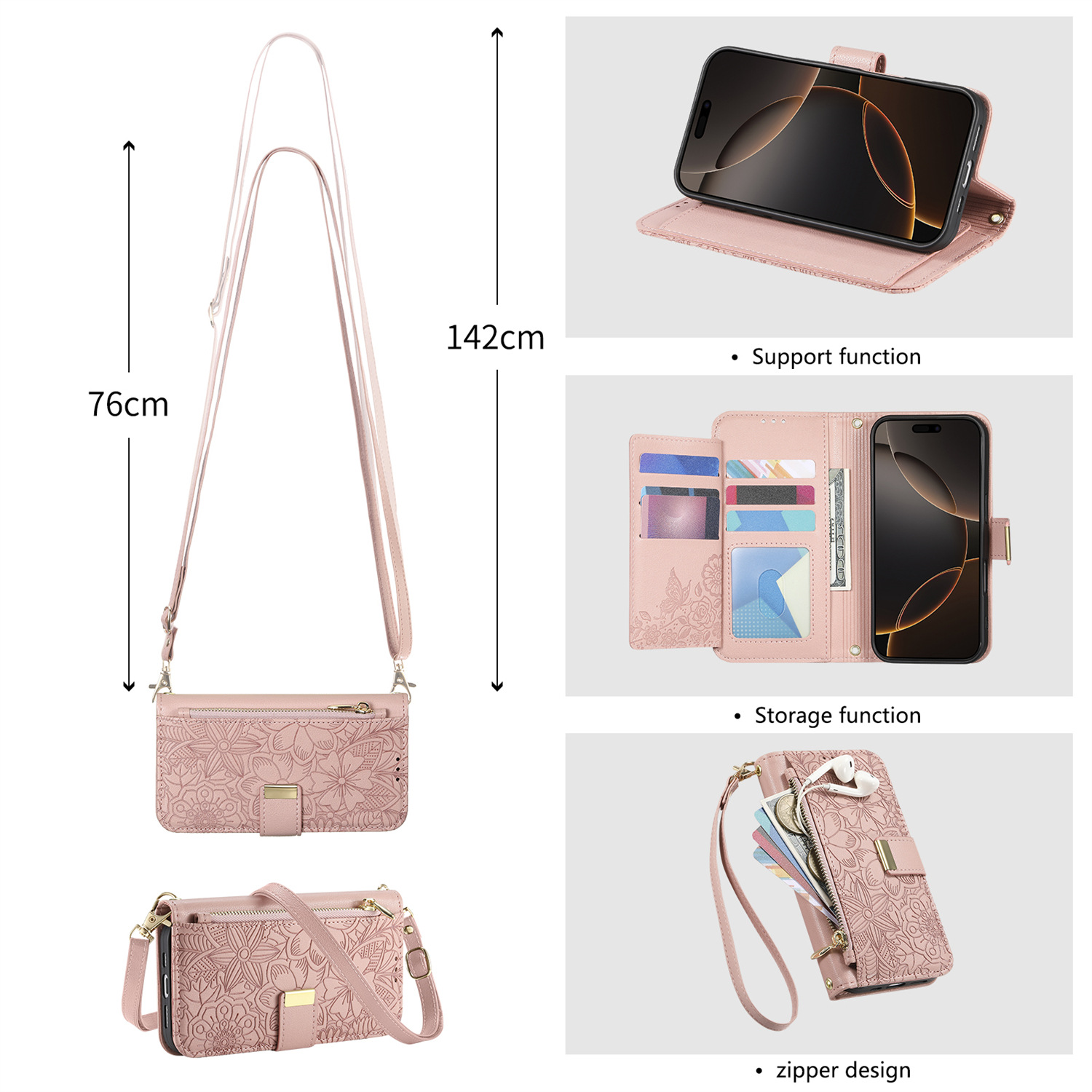 • 핑크색 더블 랜야드 조합 (크로스바디 + 짧은 랜야드)
