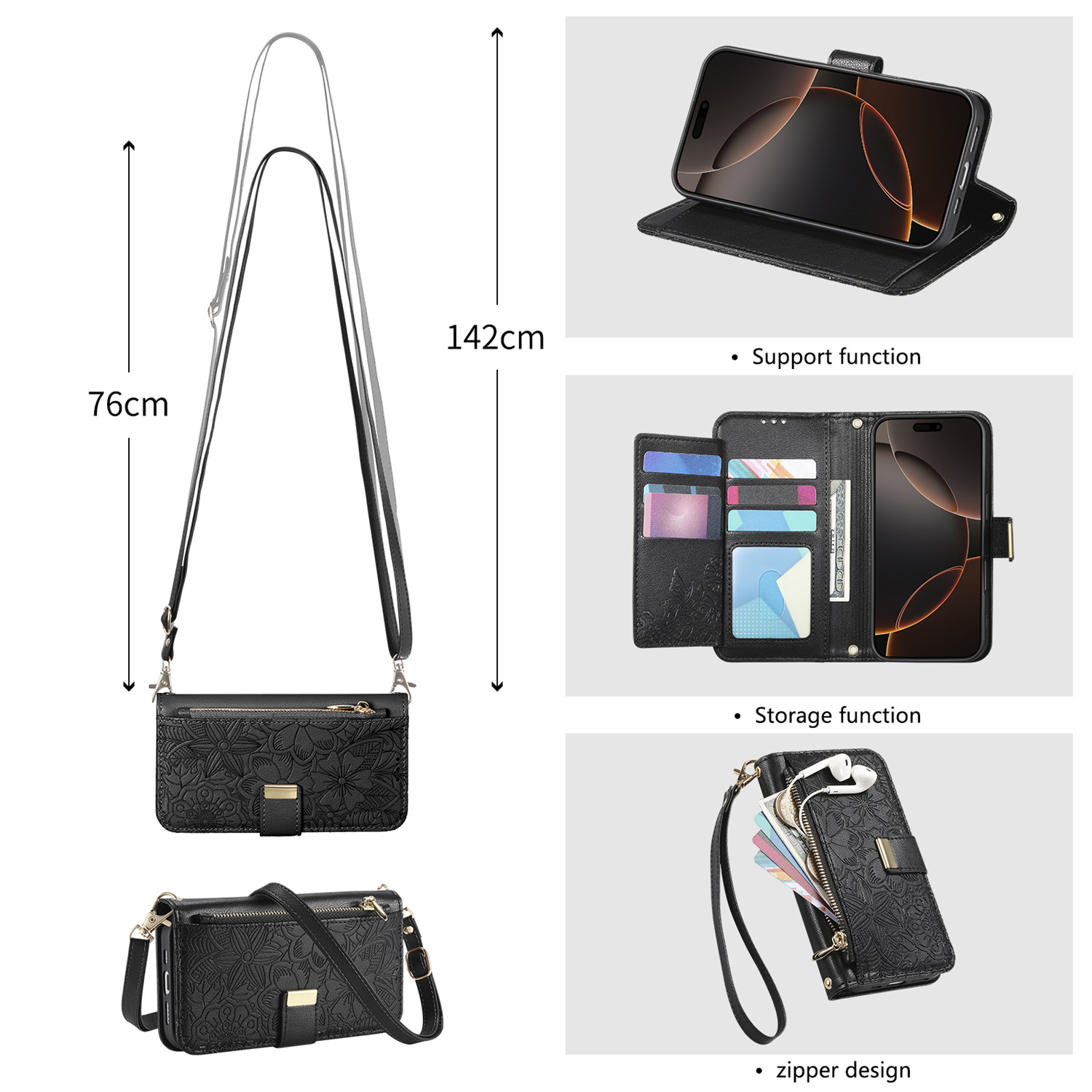 • 블랙 더블 랜야드 조합(크로스바디 + 짧은 랜야드)