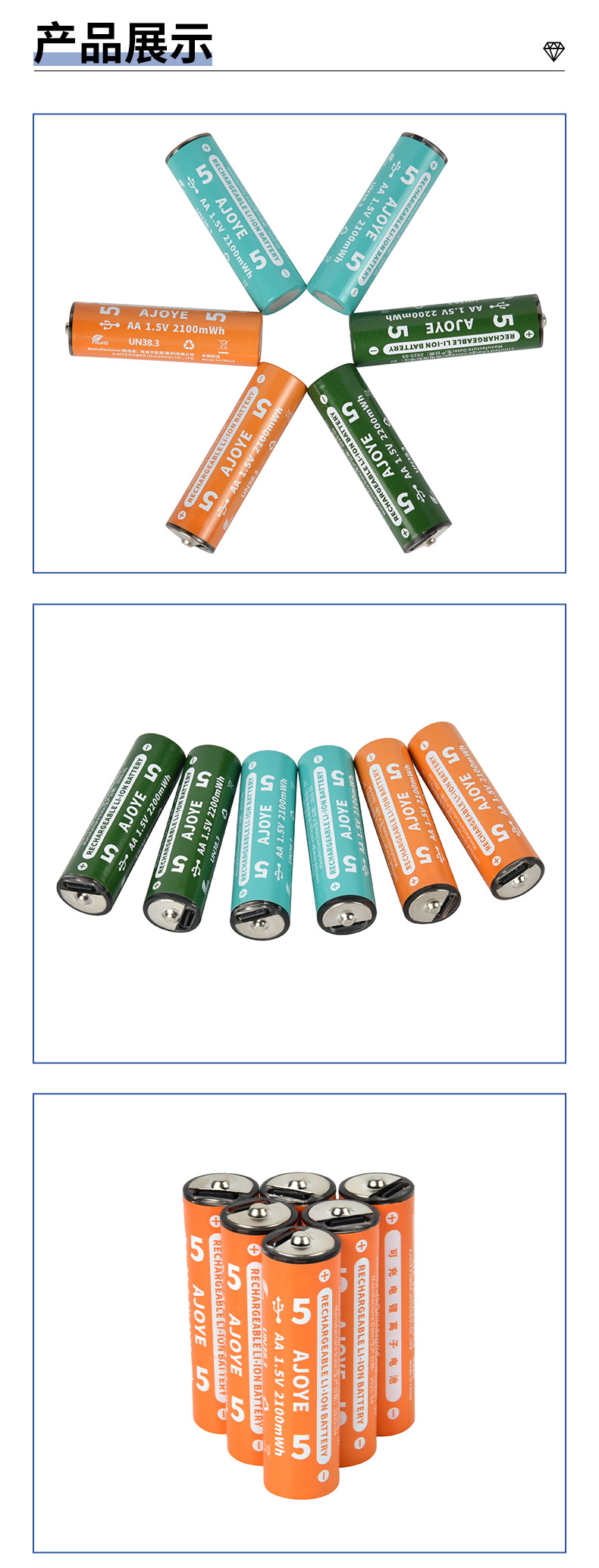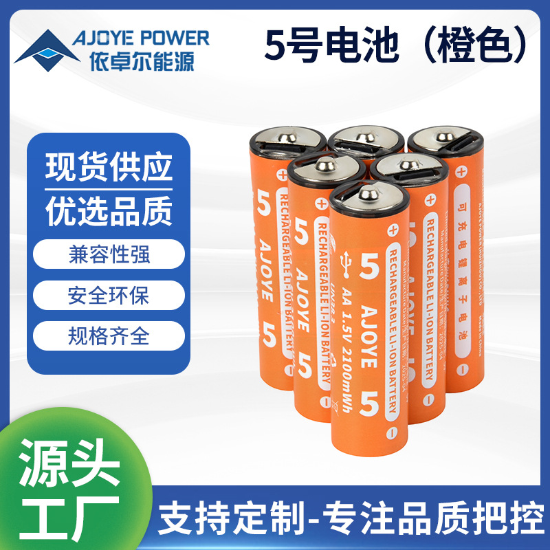 5호 충전식 리튬 배터리 오렌지 1.5V 전압 일정한 충전 리튬 배터리 USB 충전식 건전지 유형-C
