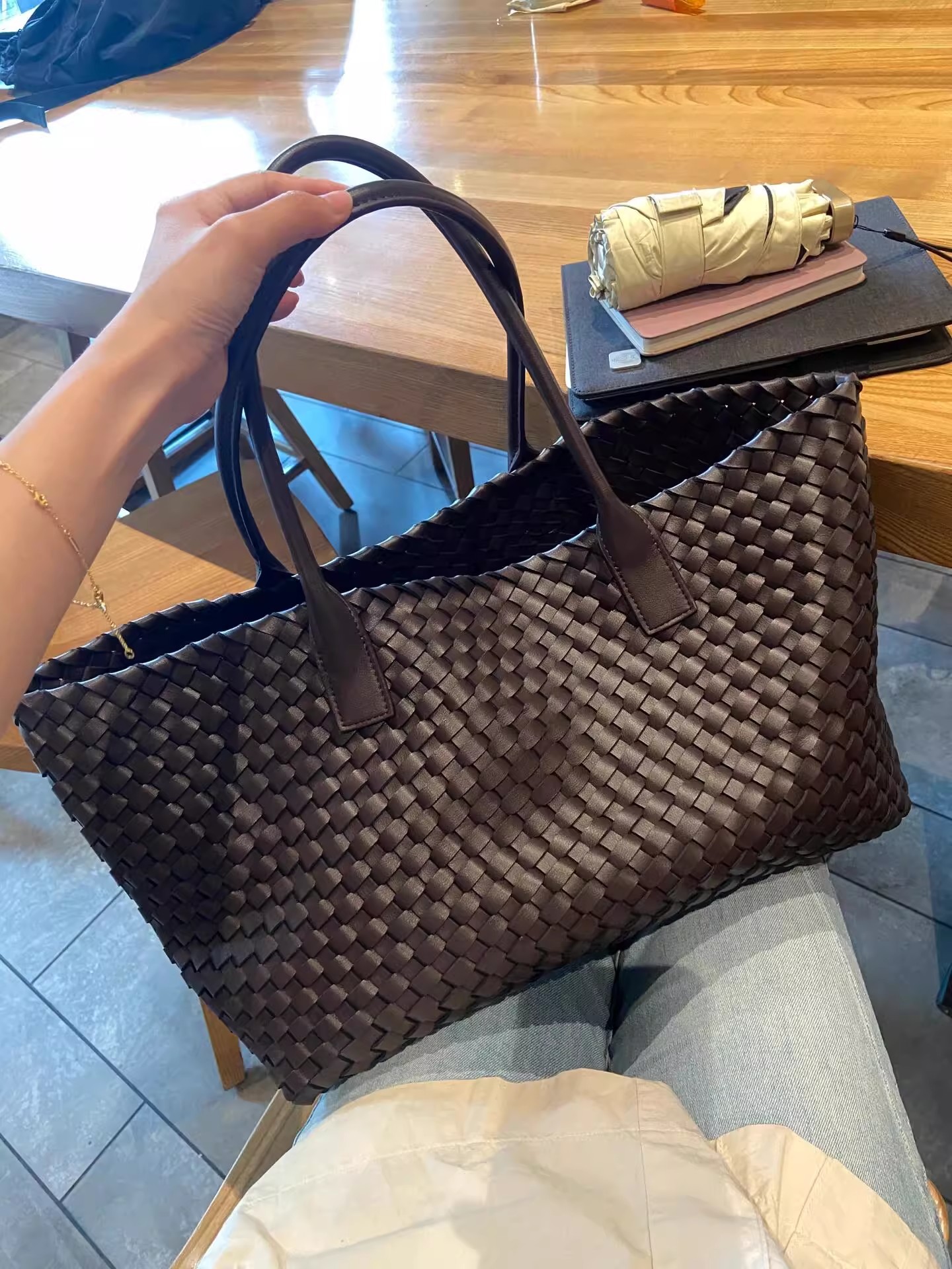 여성용 대용량 손으로 짠 가방 2025 새로운 스타일의 고급 단순 통근 숄더 겨드랑이 가방 토트 대형 가방스토어 가기