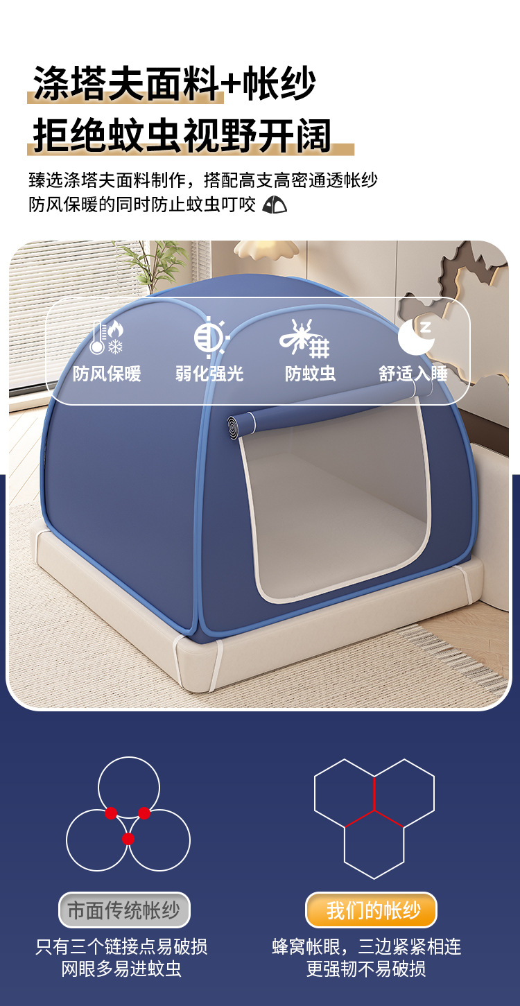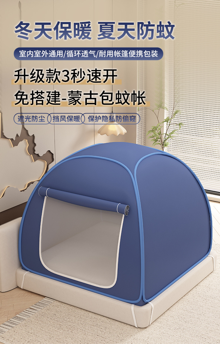 모기 방지 더블 침대 겨울 이층 침대 두꺼운 따뜻한 텐트 방풍 및 방한 설치가 필요 없는 몽골리안 돔 방풍 모기장스토어 가기