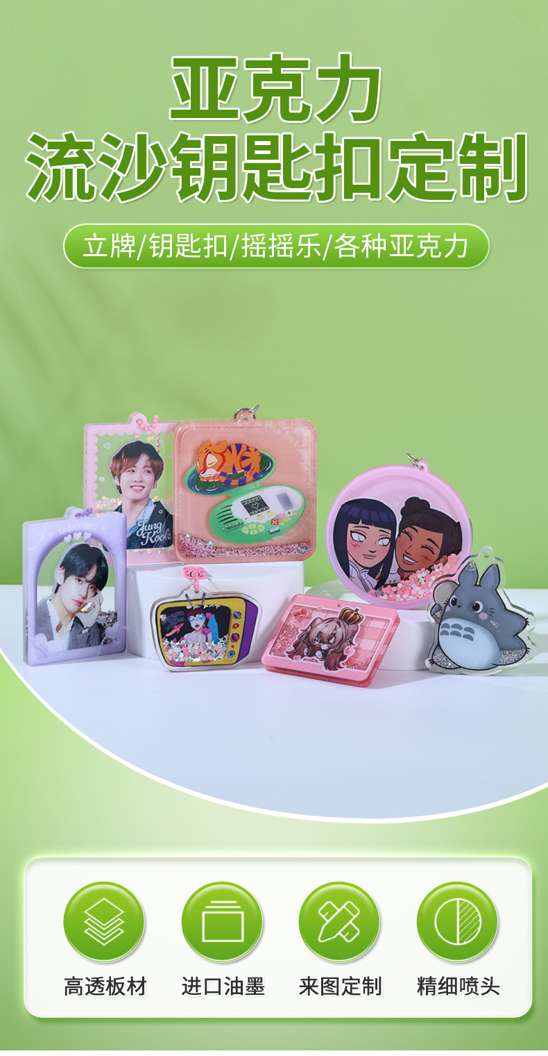 아크릴 흐르는 모래 키링, 애니메이션 커플, 연예인 양면 스탠드 피규어, 2차원 장식품, 사진으로 맞춤 제작 가능